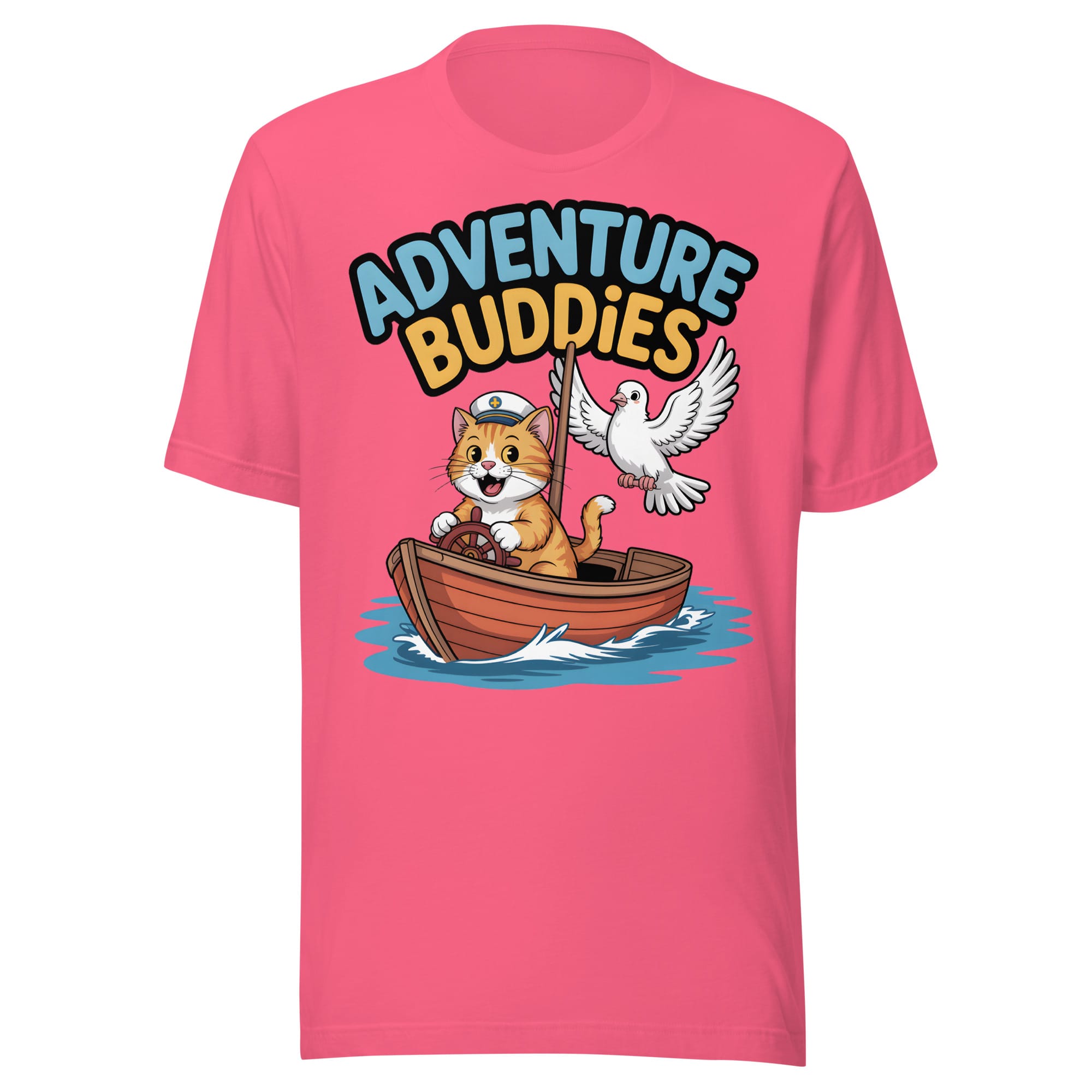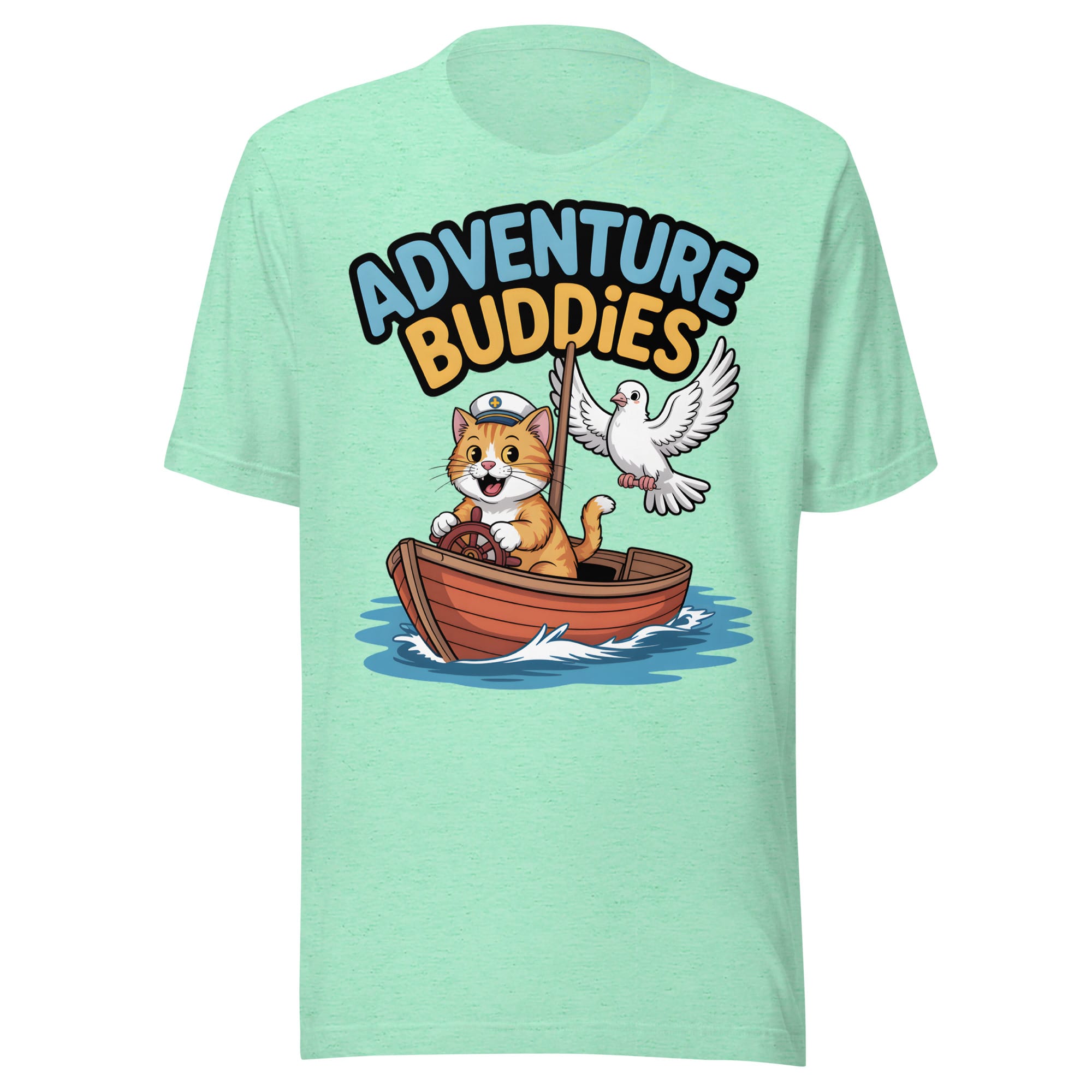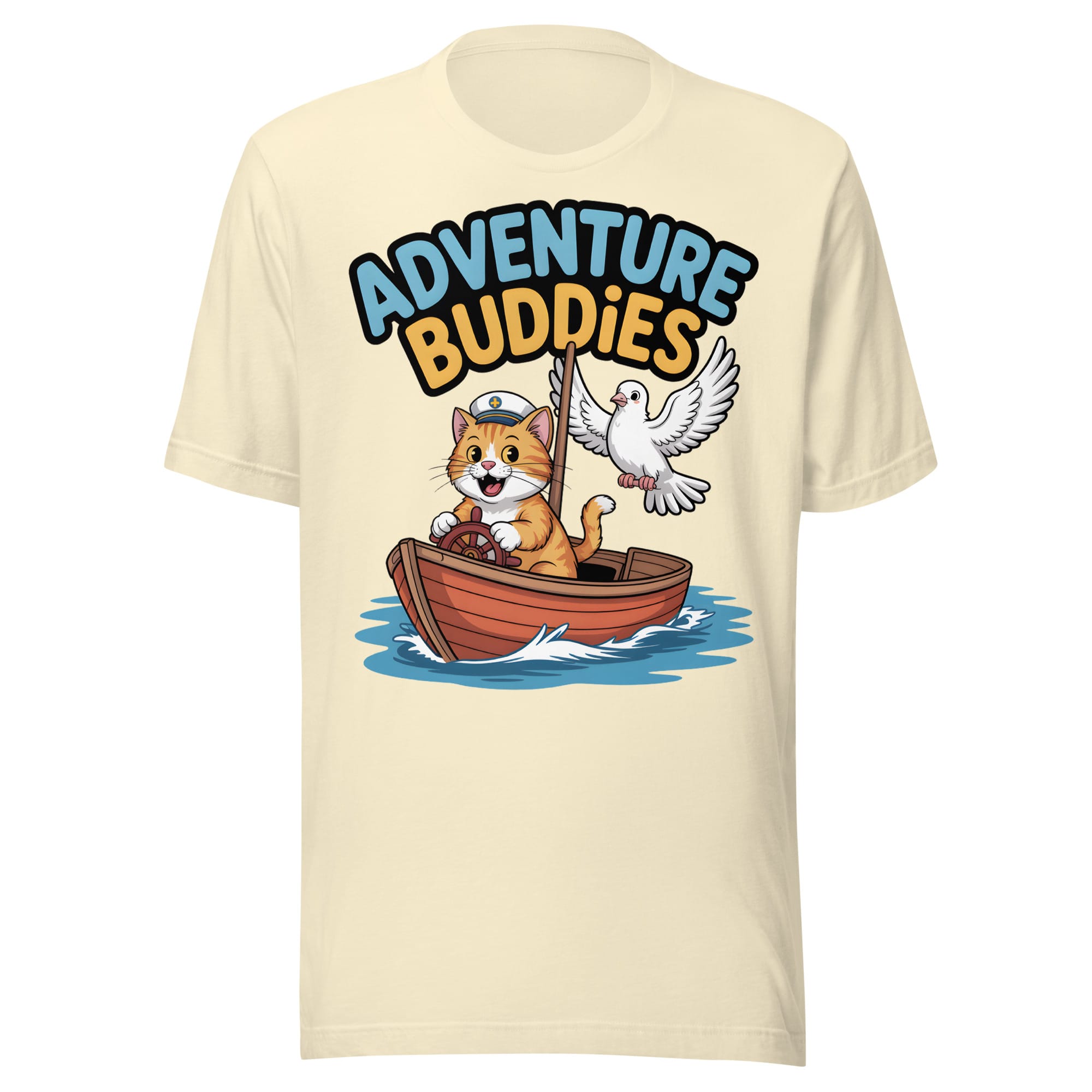 Ready for your next journey? This adorable “Adventure Buddies” T-shirt is perfect for those who love exploration, the sea, and of course, cats! The vibrant graphic features a cheerful cat captain and its bird companion sailing their way to new horizons. It’s a fun, unique tee for any cat lover, traveler, or nautical enthusiast.