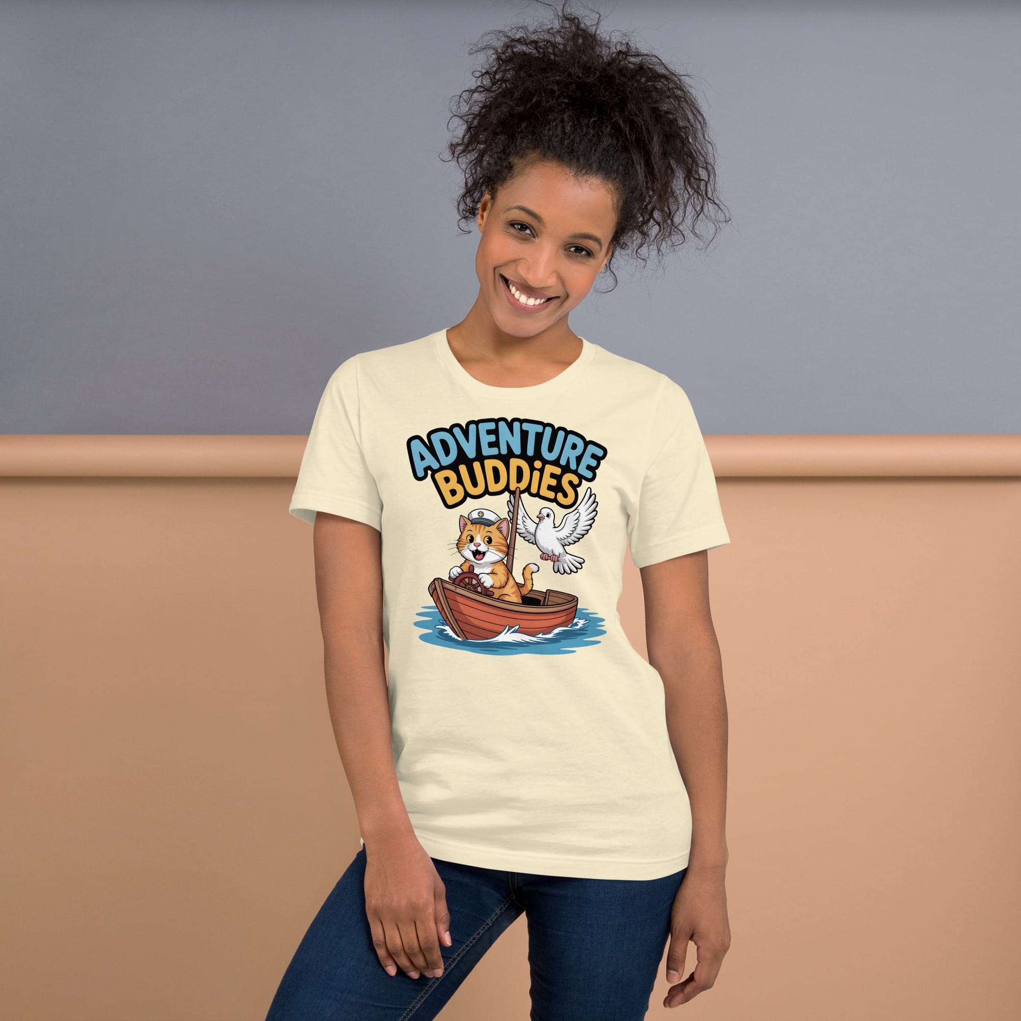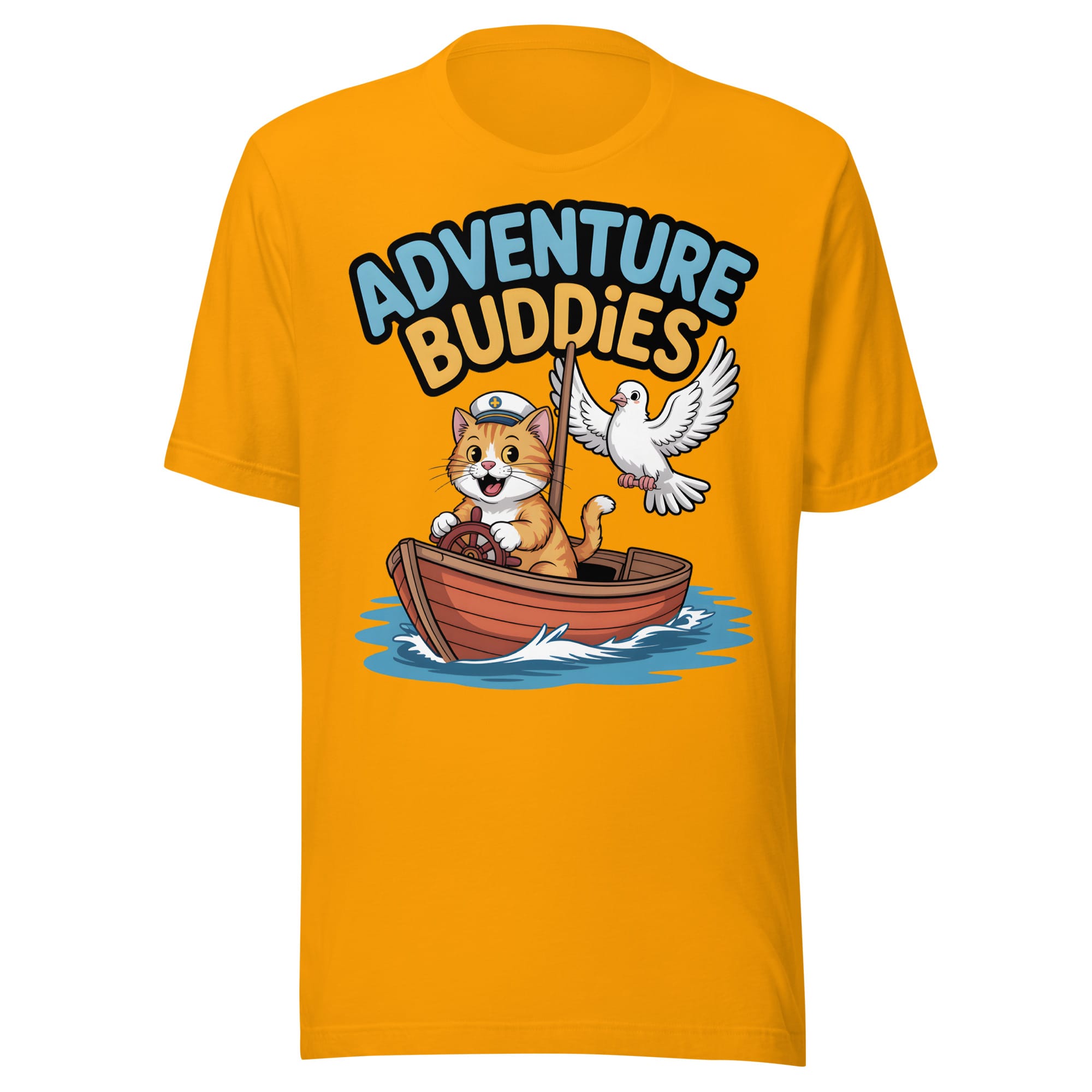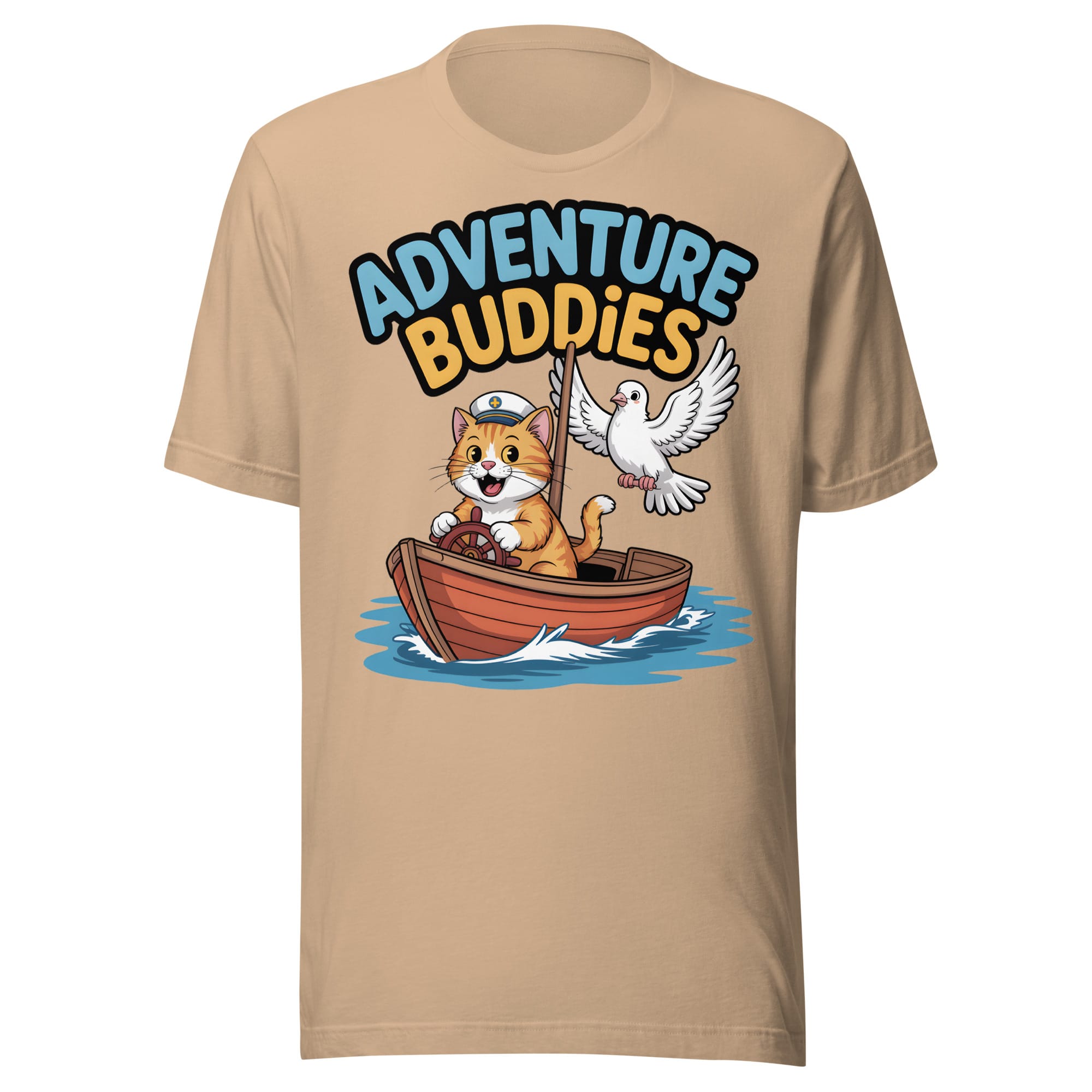Ready for your next journey? This adorable “Adventure Buddies” T-shirt is perfect for those who love exploration, the sea, and of course, cats! The vibrant graphic features a cheerful cat captain and its bird companion sailing their way to new horizons. It’s a fun, unique tee for any cat lover, traveler, or nautical enthusiast.