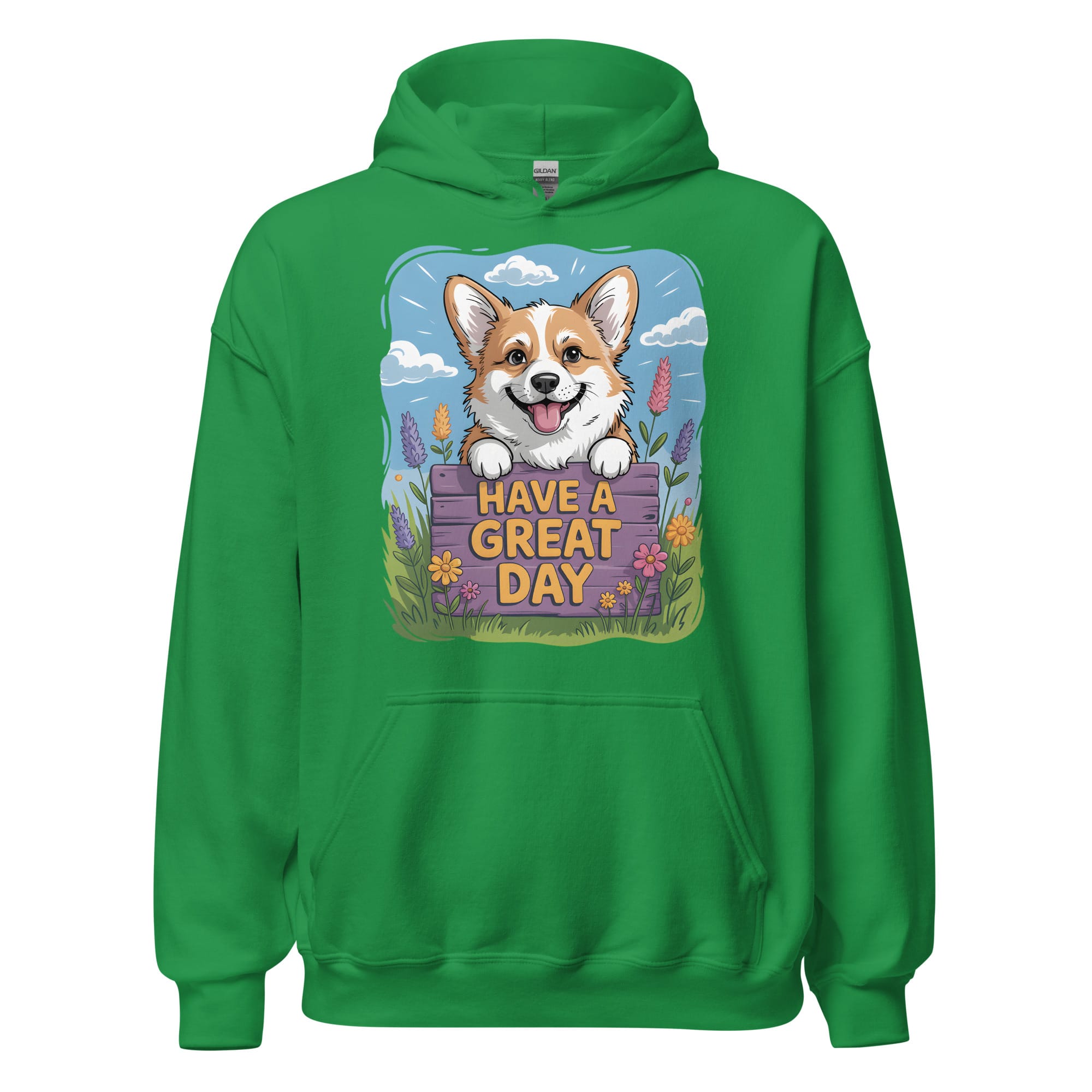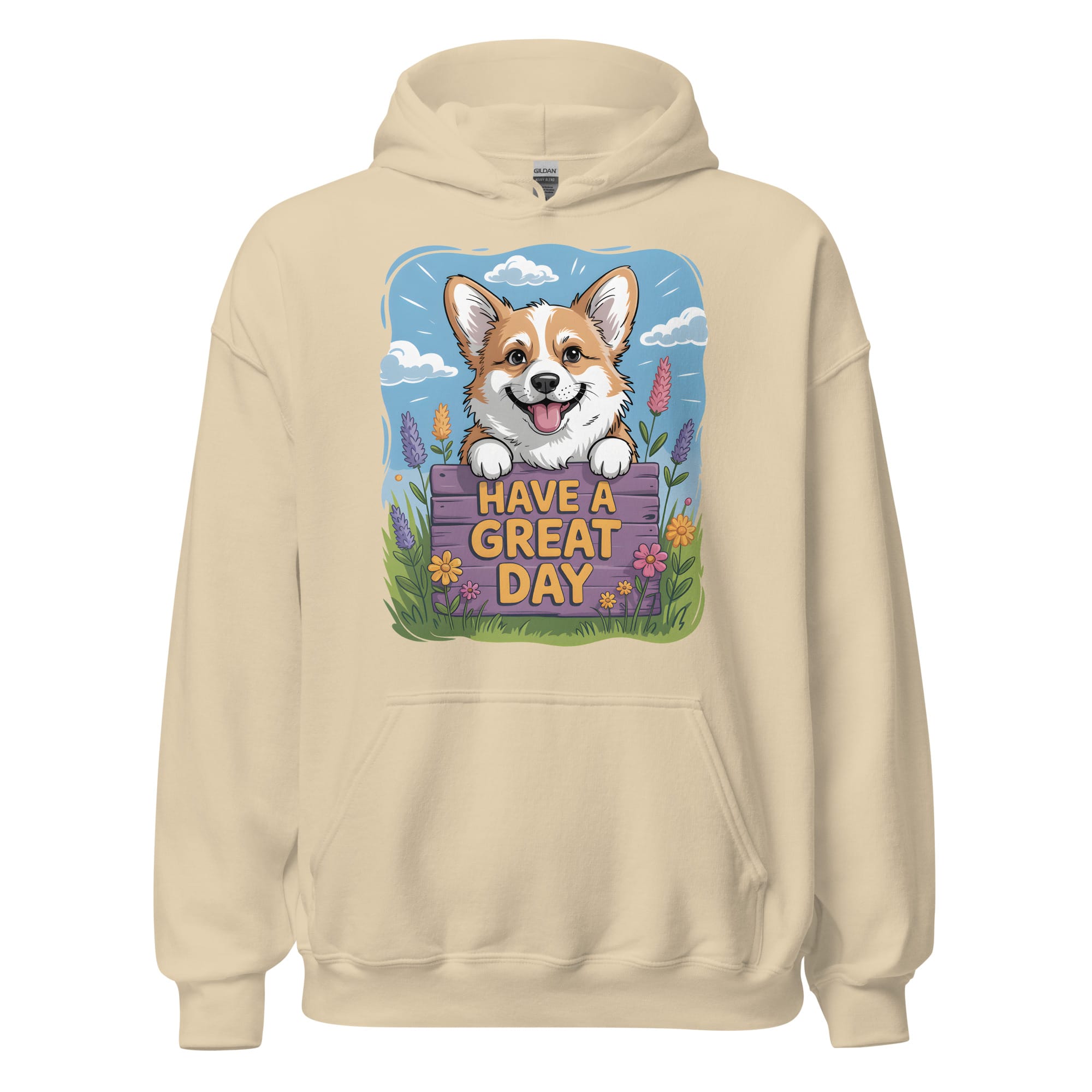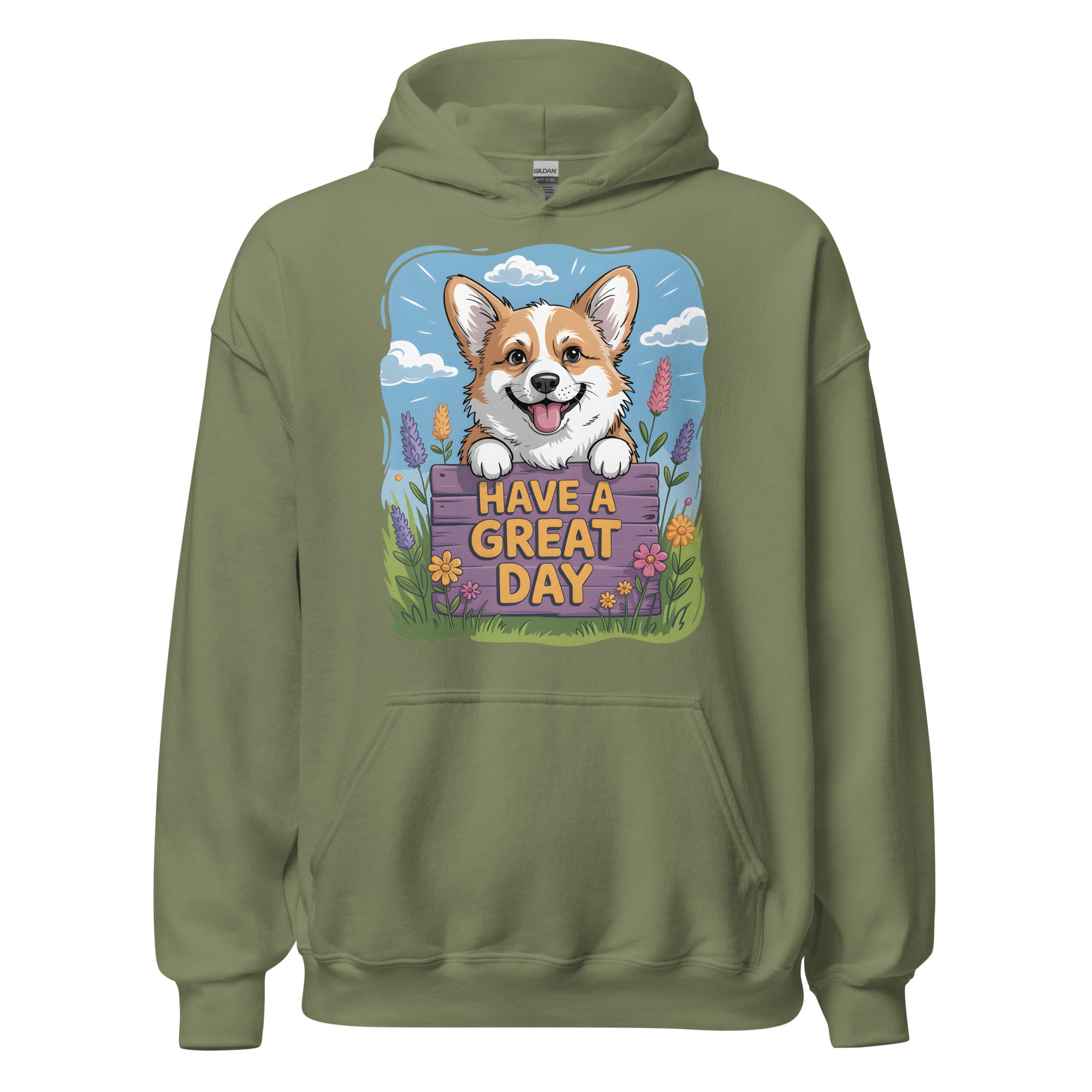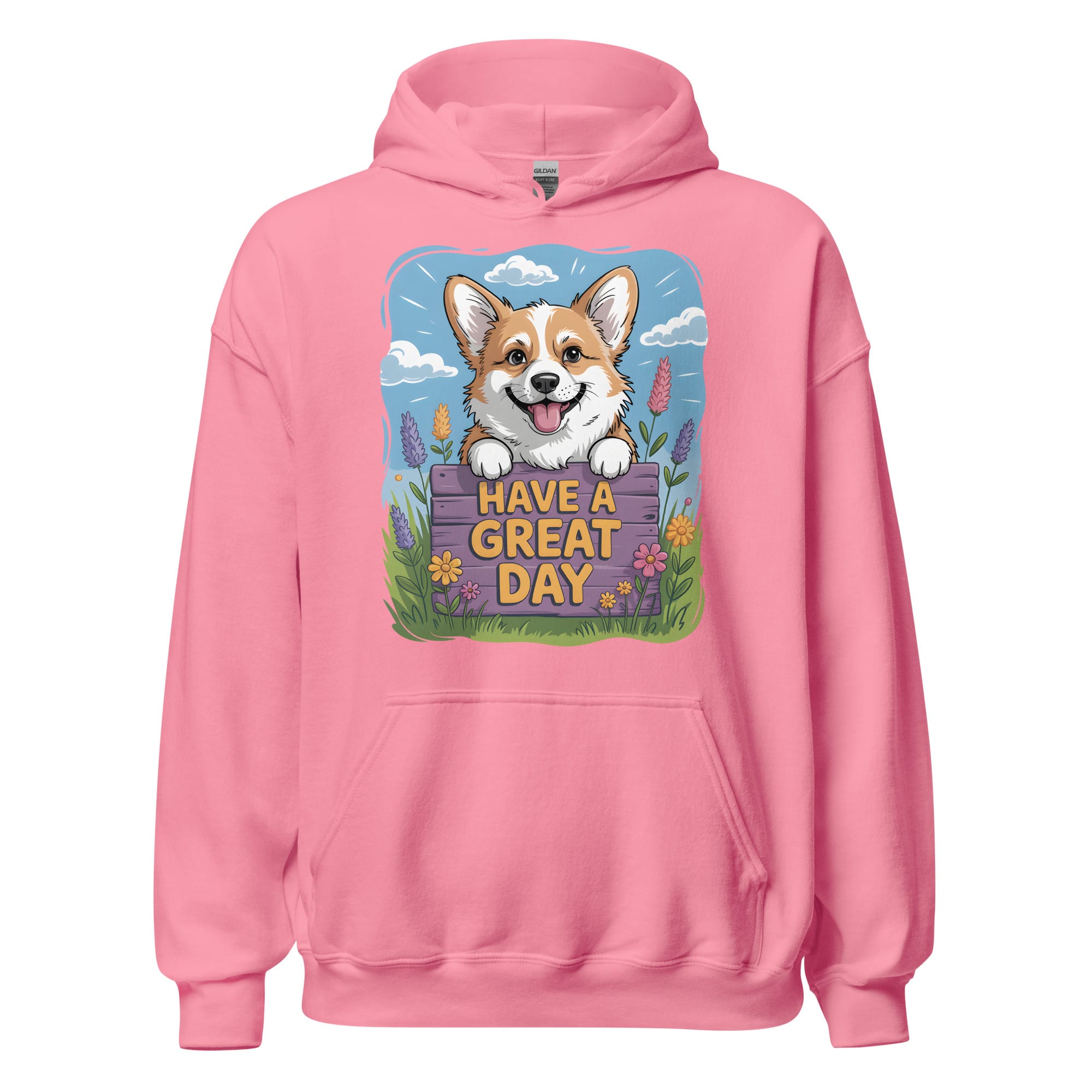 Looking for a daily dose of joy and warmth? Our Corgi Hoodie features a carefully crafted illustration of a smiling Corgi peeking over a beautiful fence with lavender and spring flowers. This original design is a heartwarming addition for all pet parents and a fantastic choice for dog moms and dads who appreciate vibrant and positive dog apparel. Ideal for cooler days, walking your pup, or simply relaxing at home.