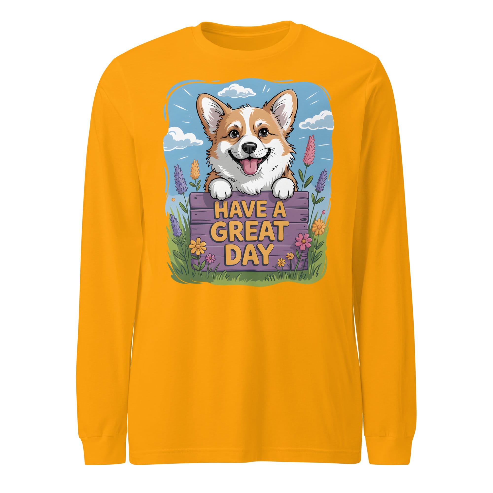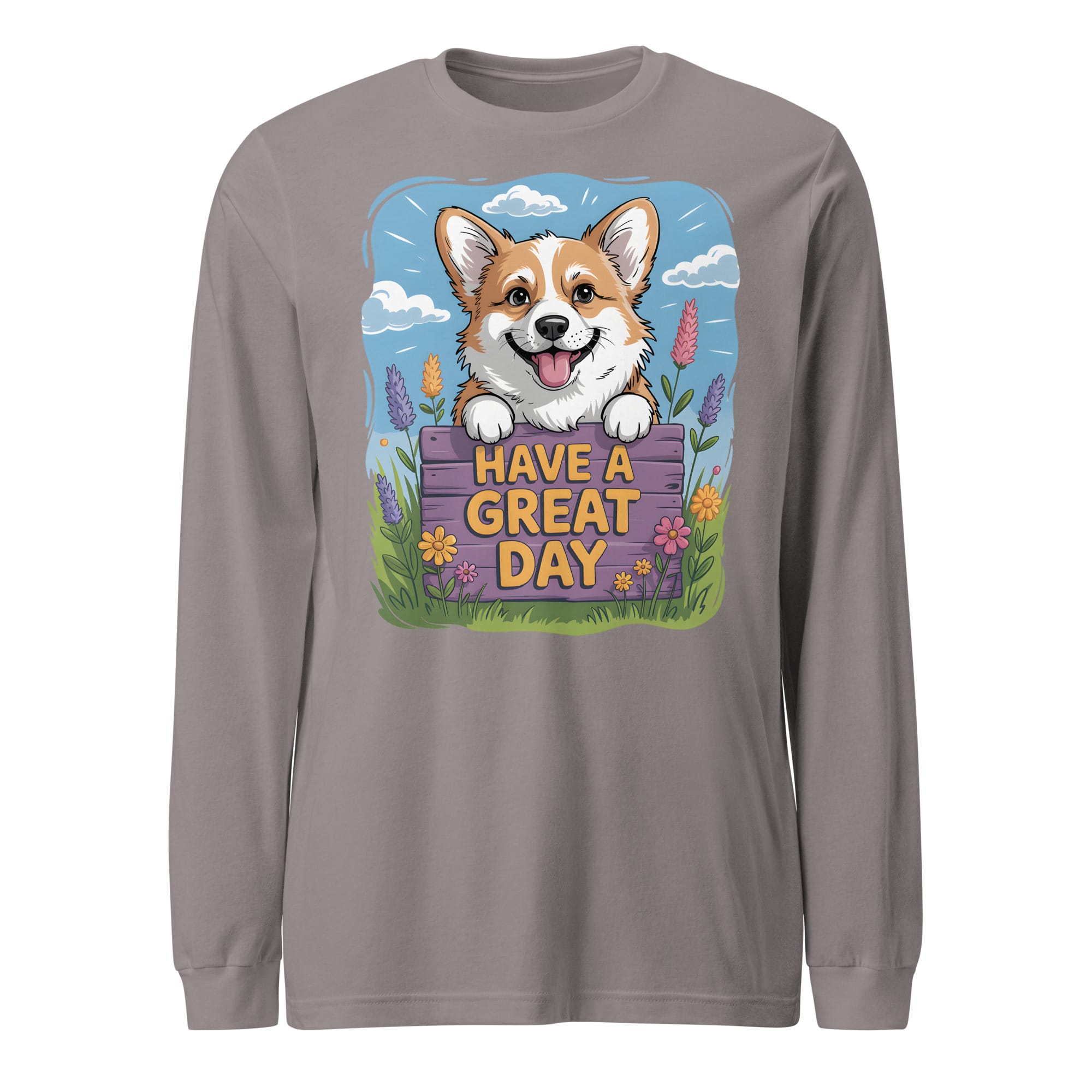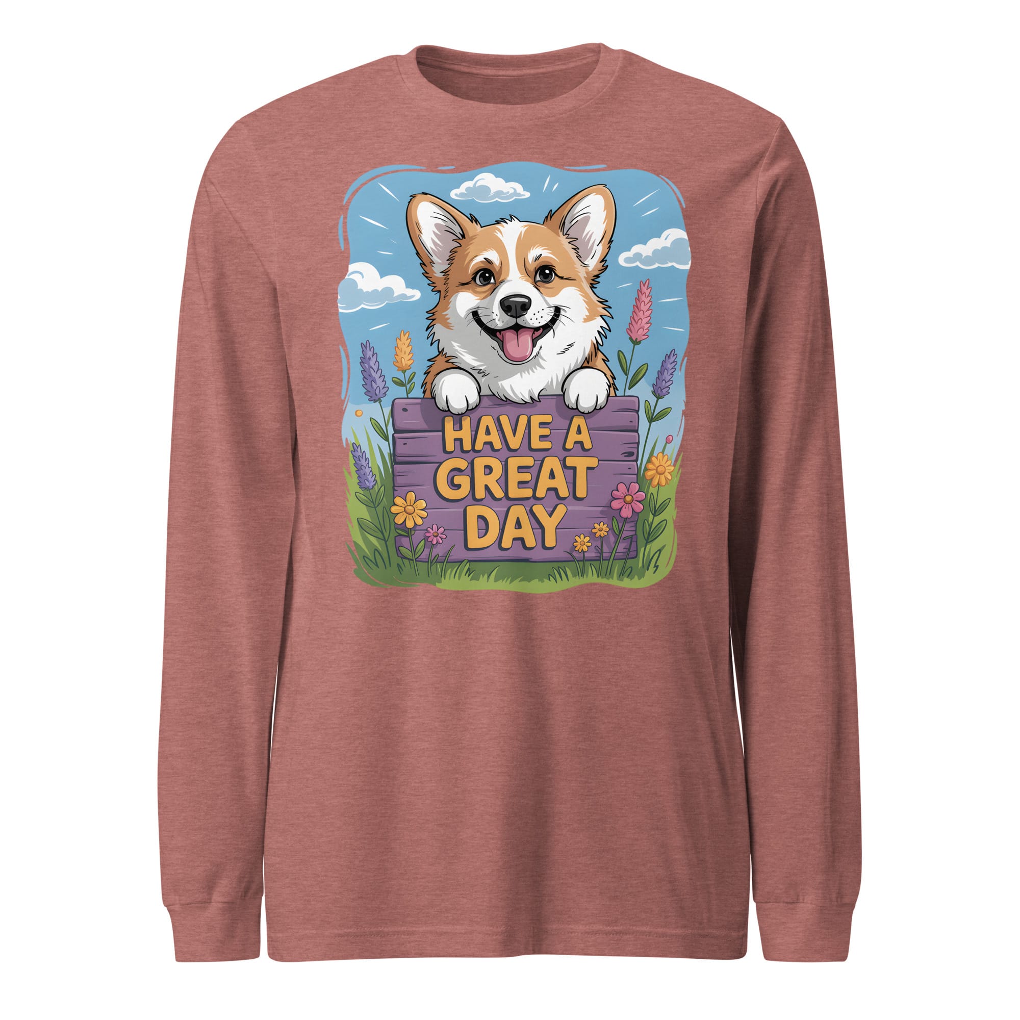 Brighten your wardrobe with this charming Unisex Long Sleeve Tee! If you are searching for a thoughtful gift for Corgi lovers or a cozy addition to your own collection, this shirt is the perfect choice. It features a carefully crafted illustration of a cheerful Corgi peeking over a floral fence with the uplifting message “HAVE A GREAT DAY.” This original design is a heartwarming option for all pet parents who want a comfortable layer and a touch of positive vibes.
