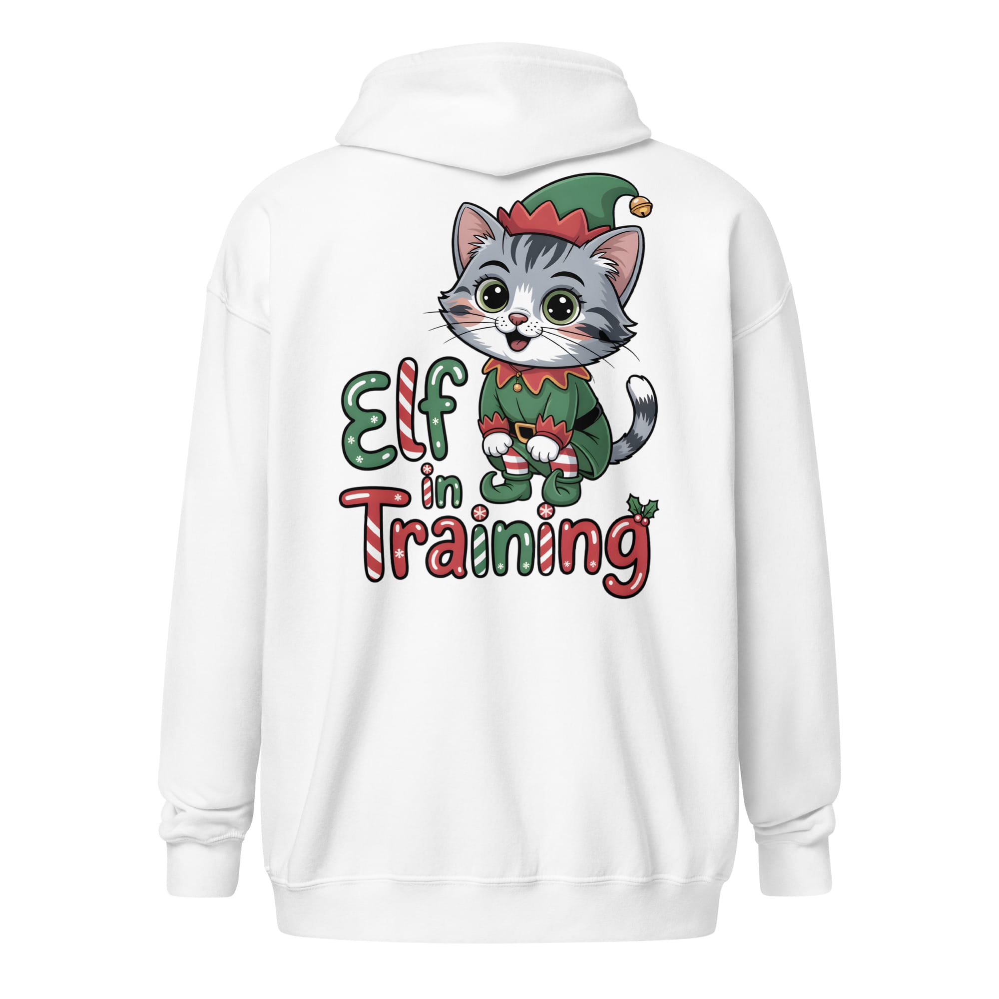 The Perfect Funny Cat Christmas Zip Hoodie: Elf in Training!