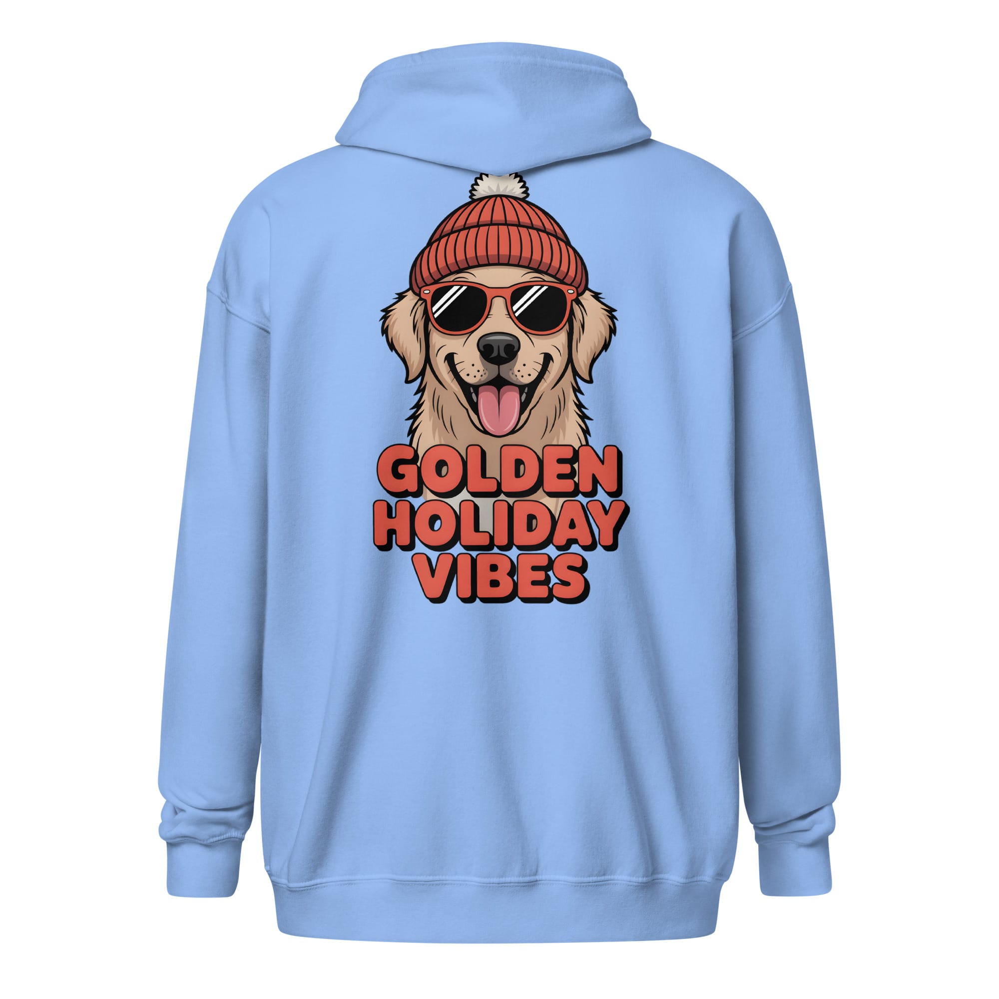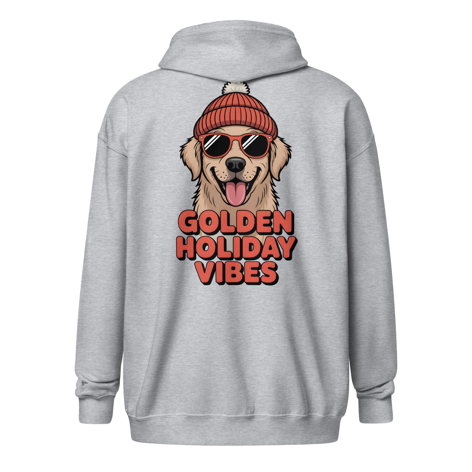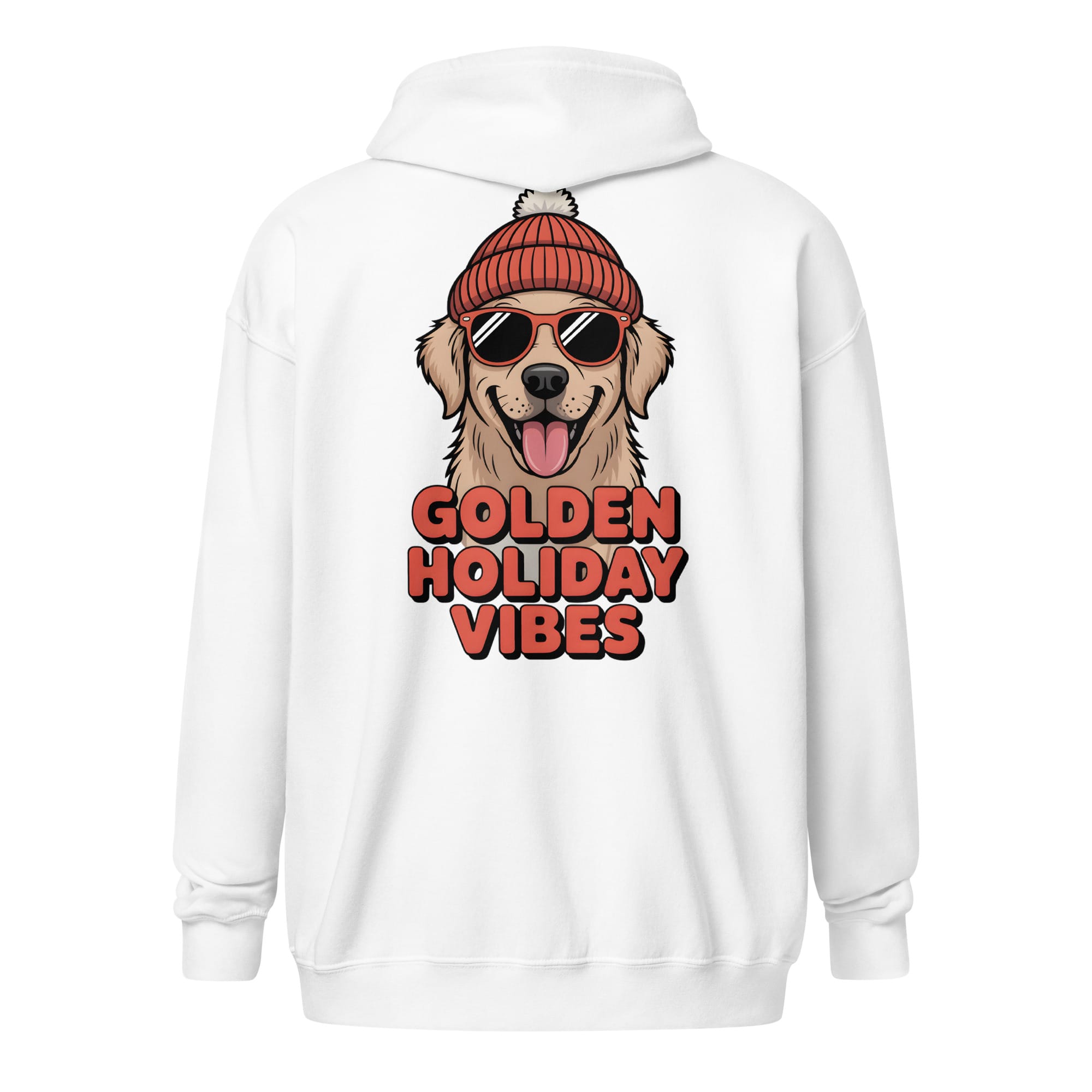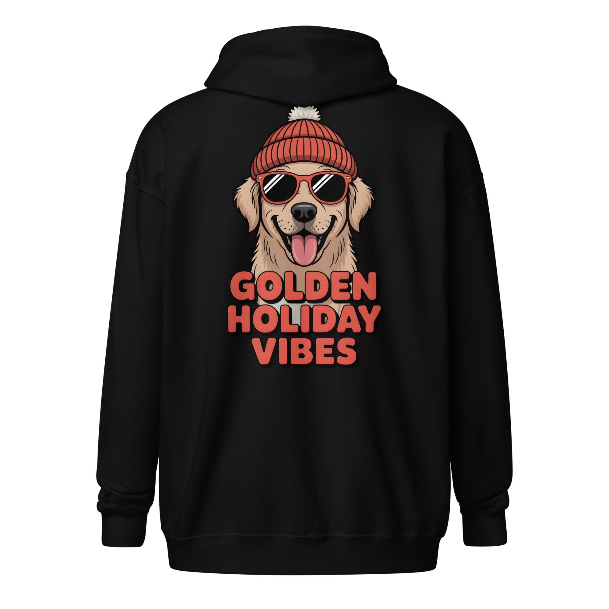 Golden Retriever Christmas Golden Holiday Vibes Unisex Zip Hoodie (Back Print)