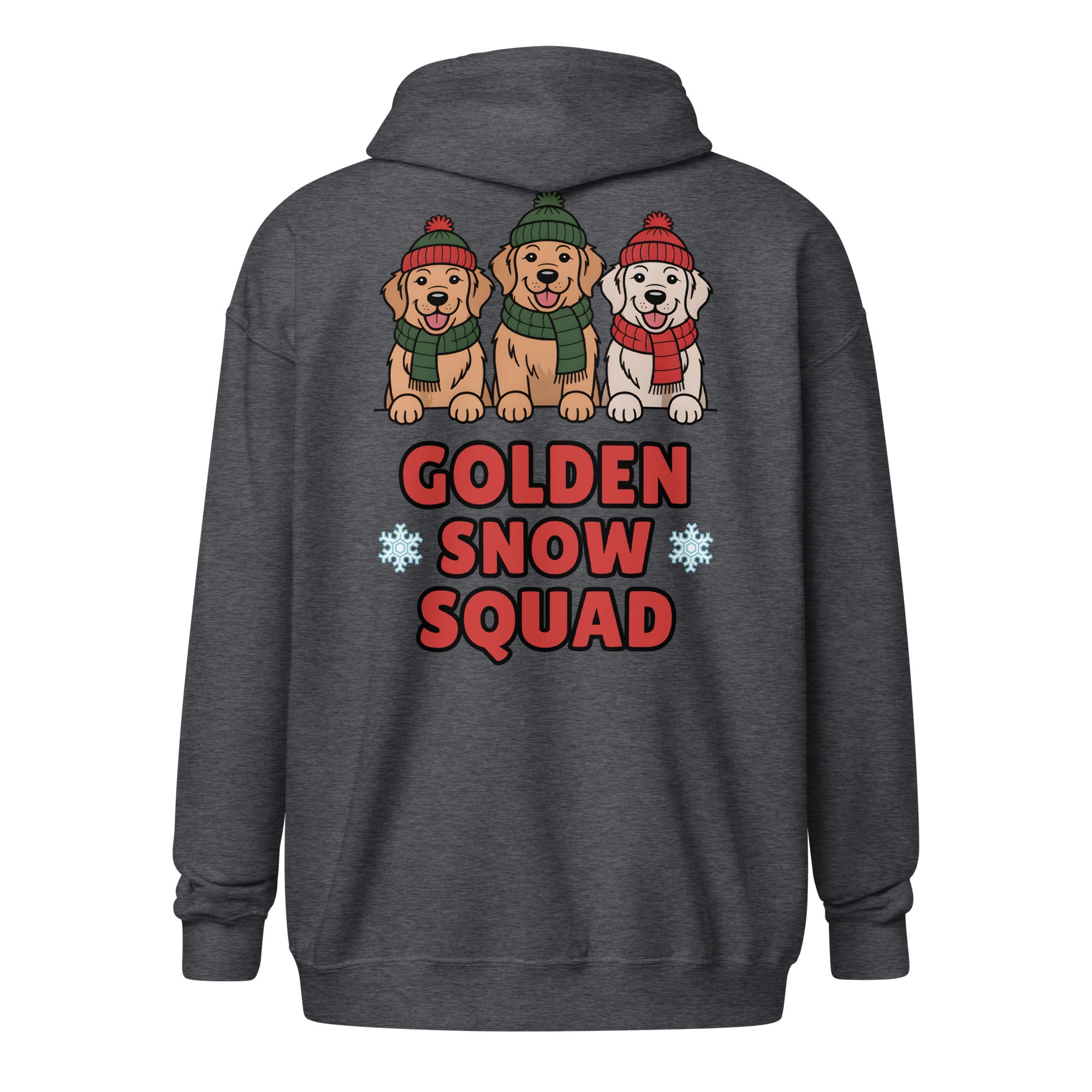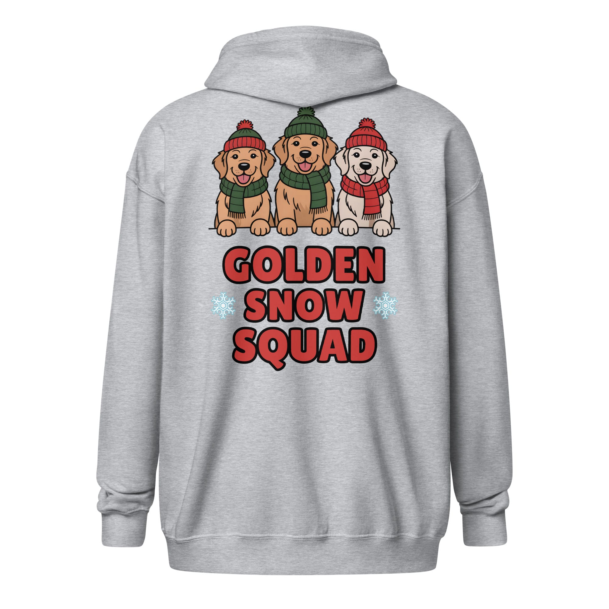Get ready to lead your pack through the cold! Our Golden Retriever Christmas Zip Hoodie combines functionality and style with the heartwarming “Golden Snow Squad” design printed prominently on the back. Whether you’re holiday shopping or relaxing by the fireplace, this zip-up layer is a festive essential for all pet parents and a great way to spread cheer for dog moms and dads.