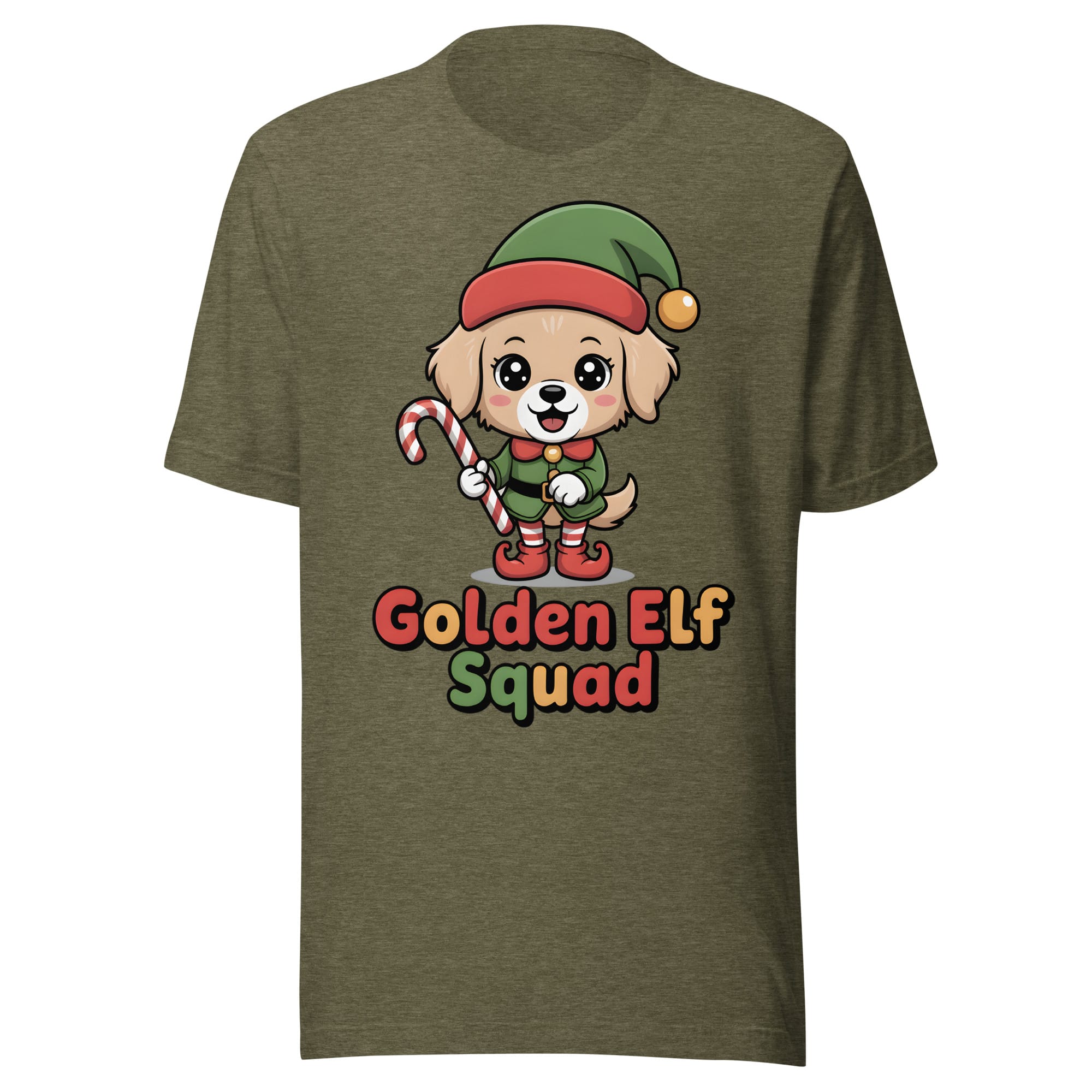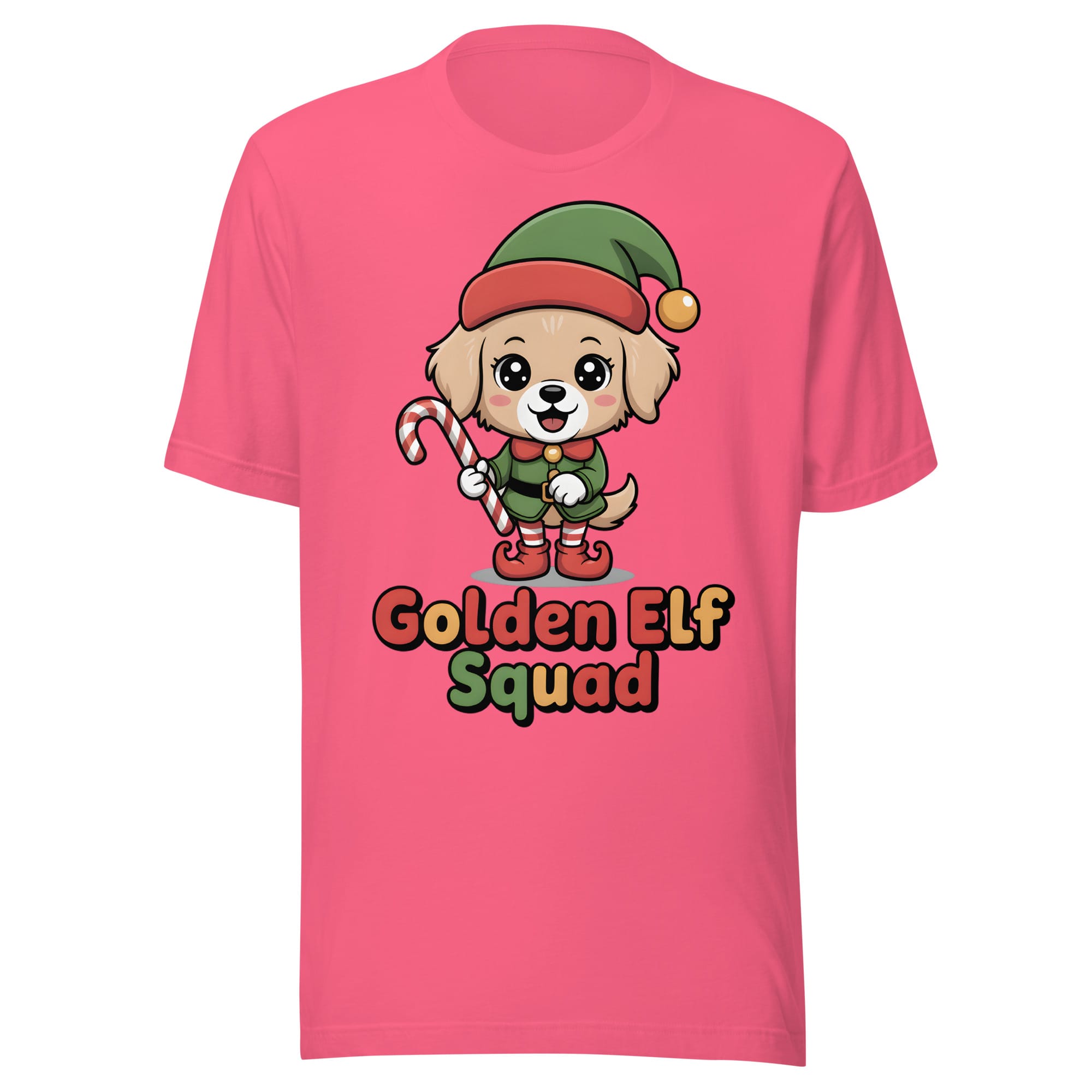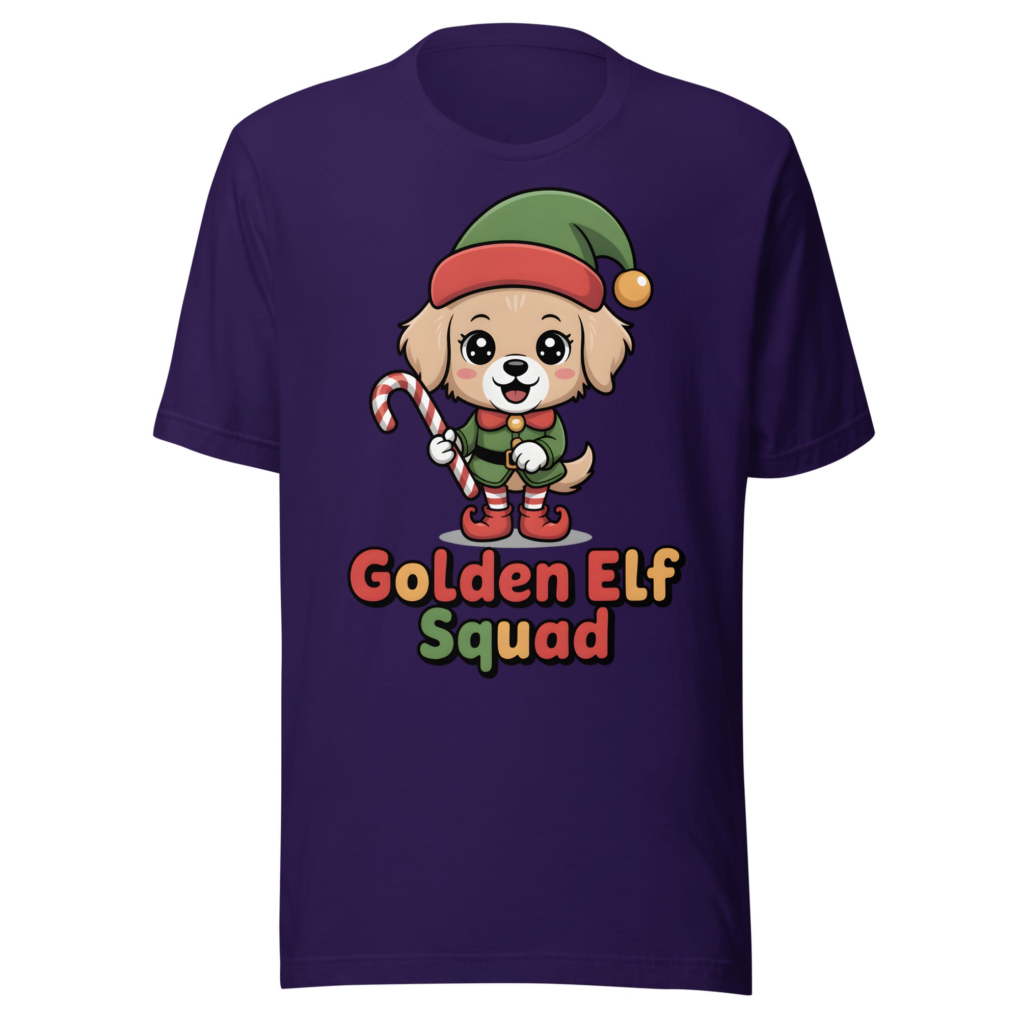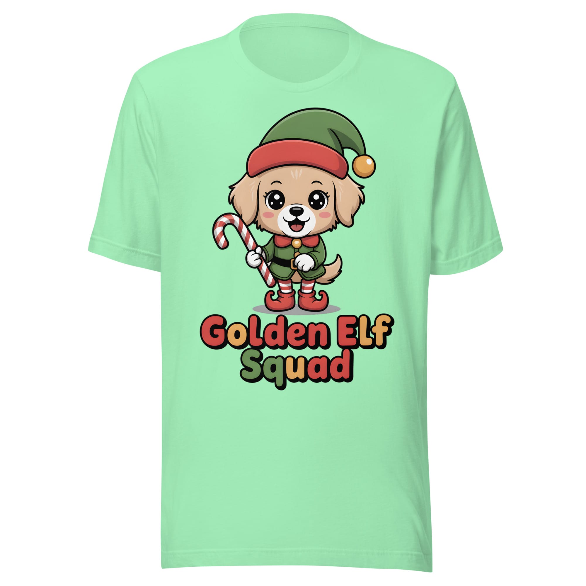 Get ready for a winter surprise overloaded with cuteness! Our Golden Retriever Elf Squad T-Shirt features a fluffy, kawaii dog playfully dressed in an oversized elf hat and shoes. Holding a candy cane like a staff, this heartwarming design is a must-have for the Christmas season.
