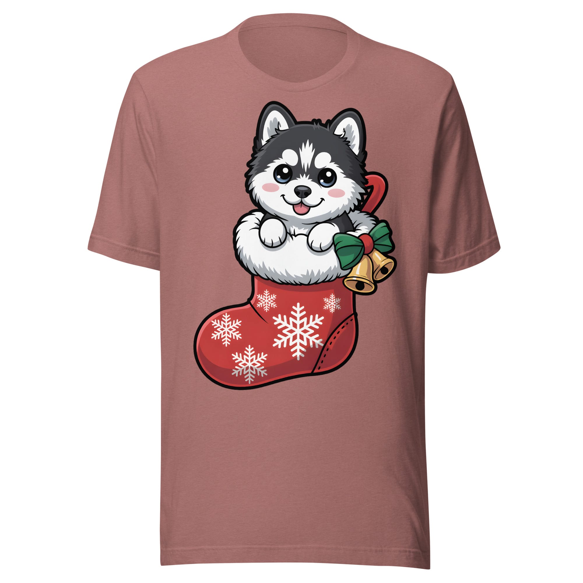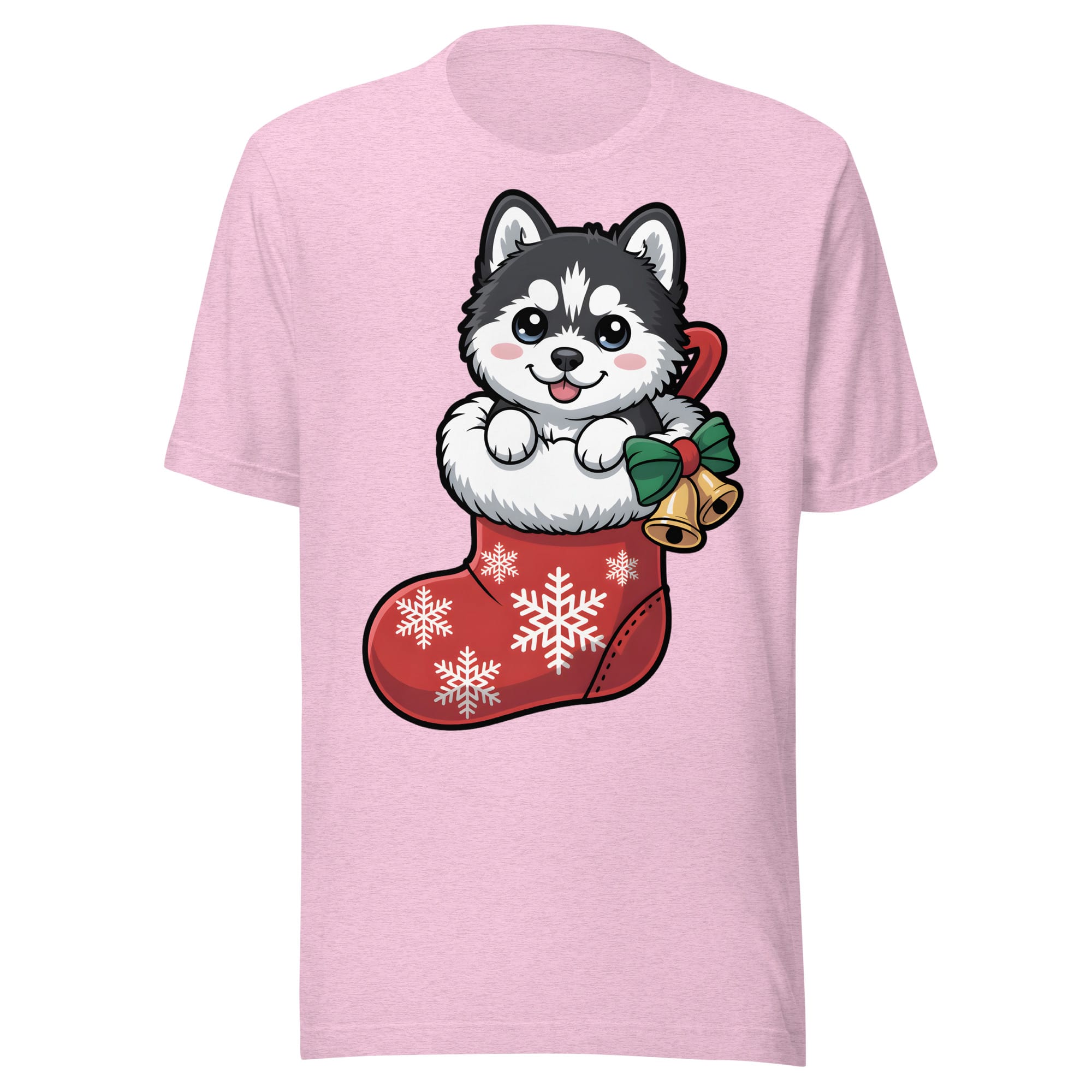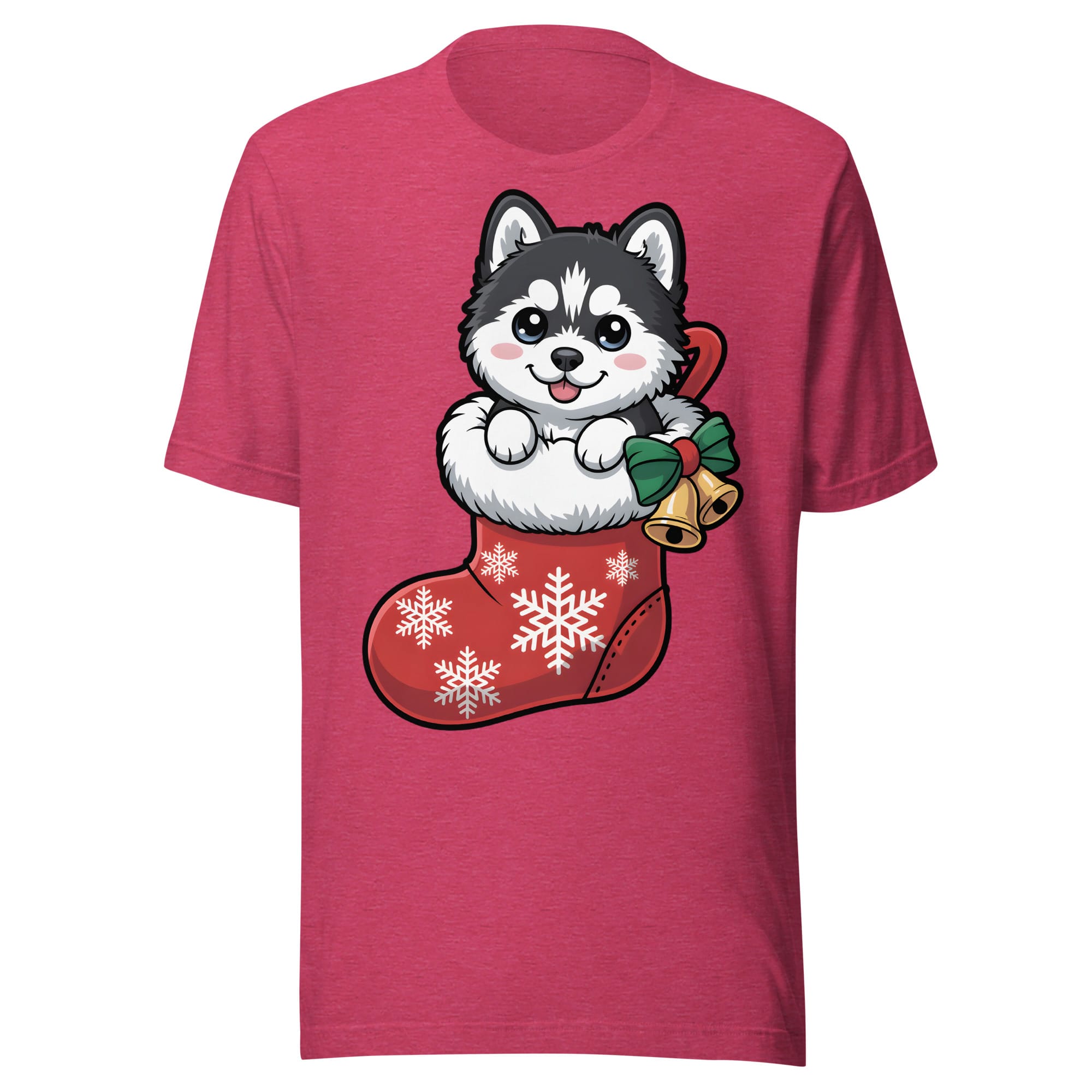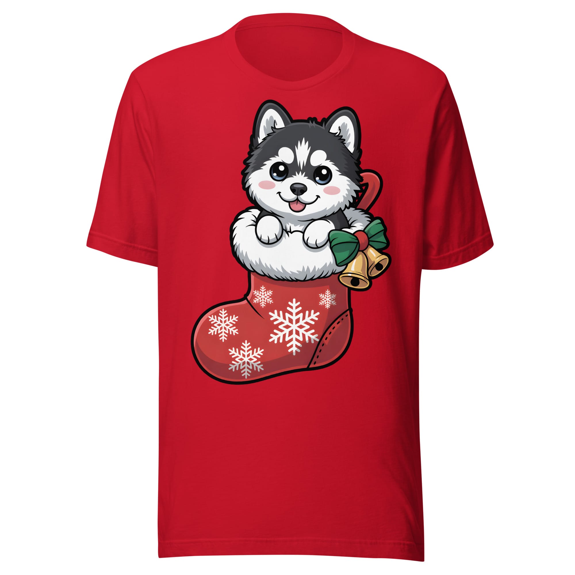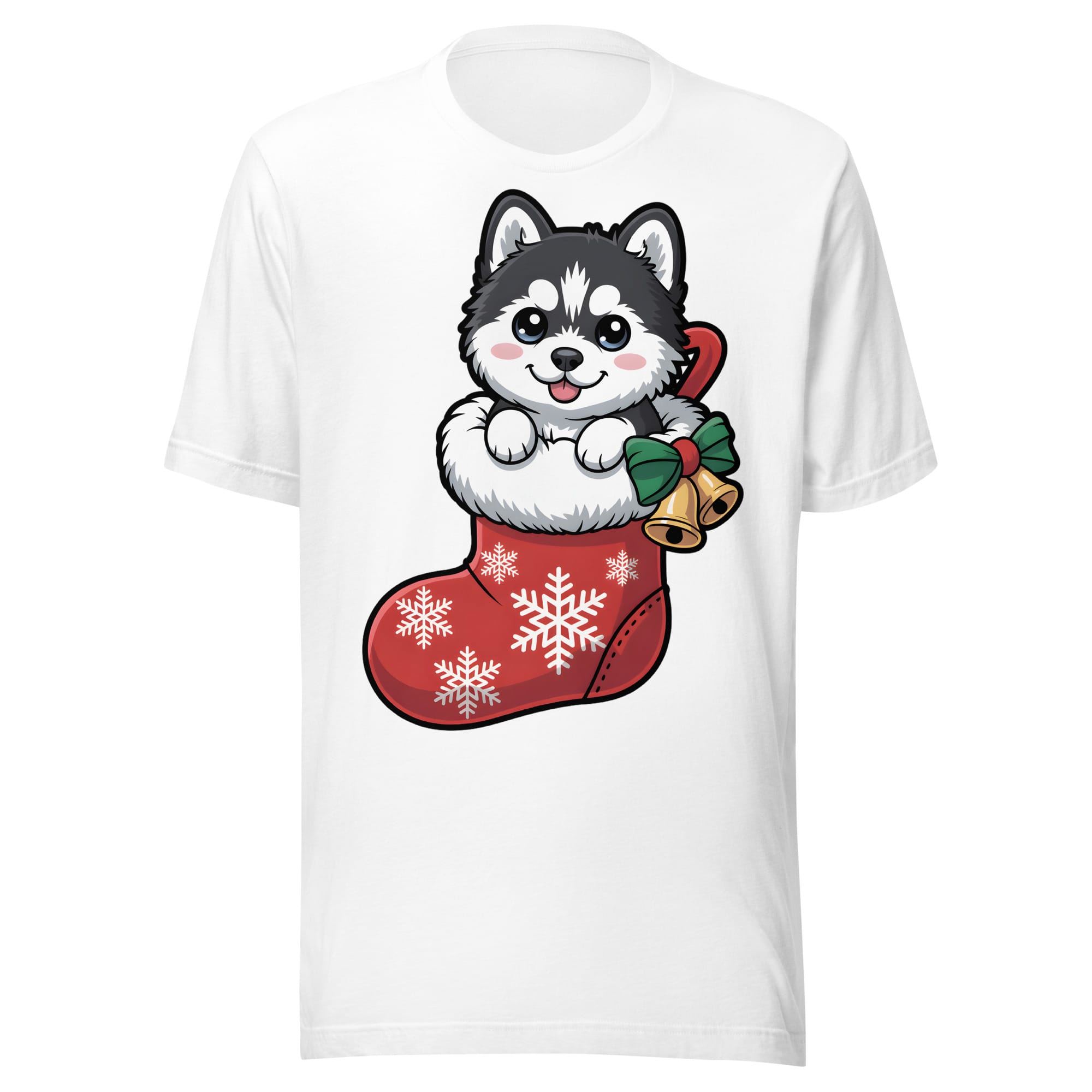 The Perfect Siberian Husky Christmas T-Shirt: Chibi Stocking Surprise