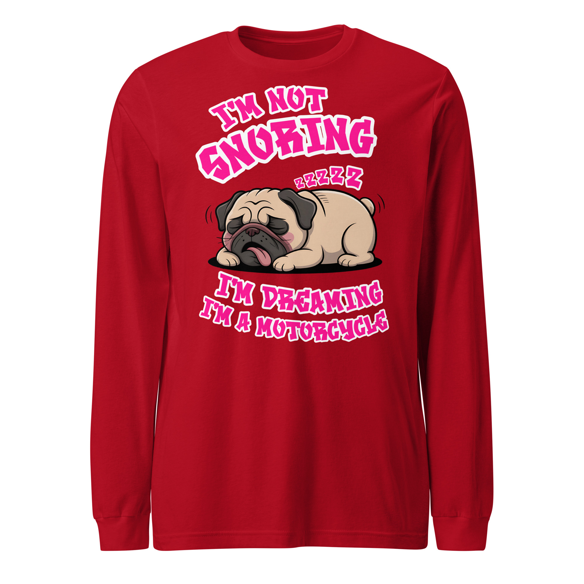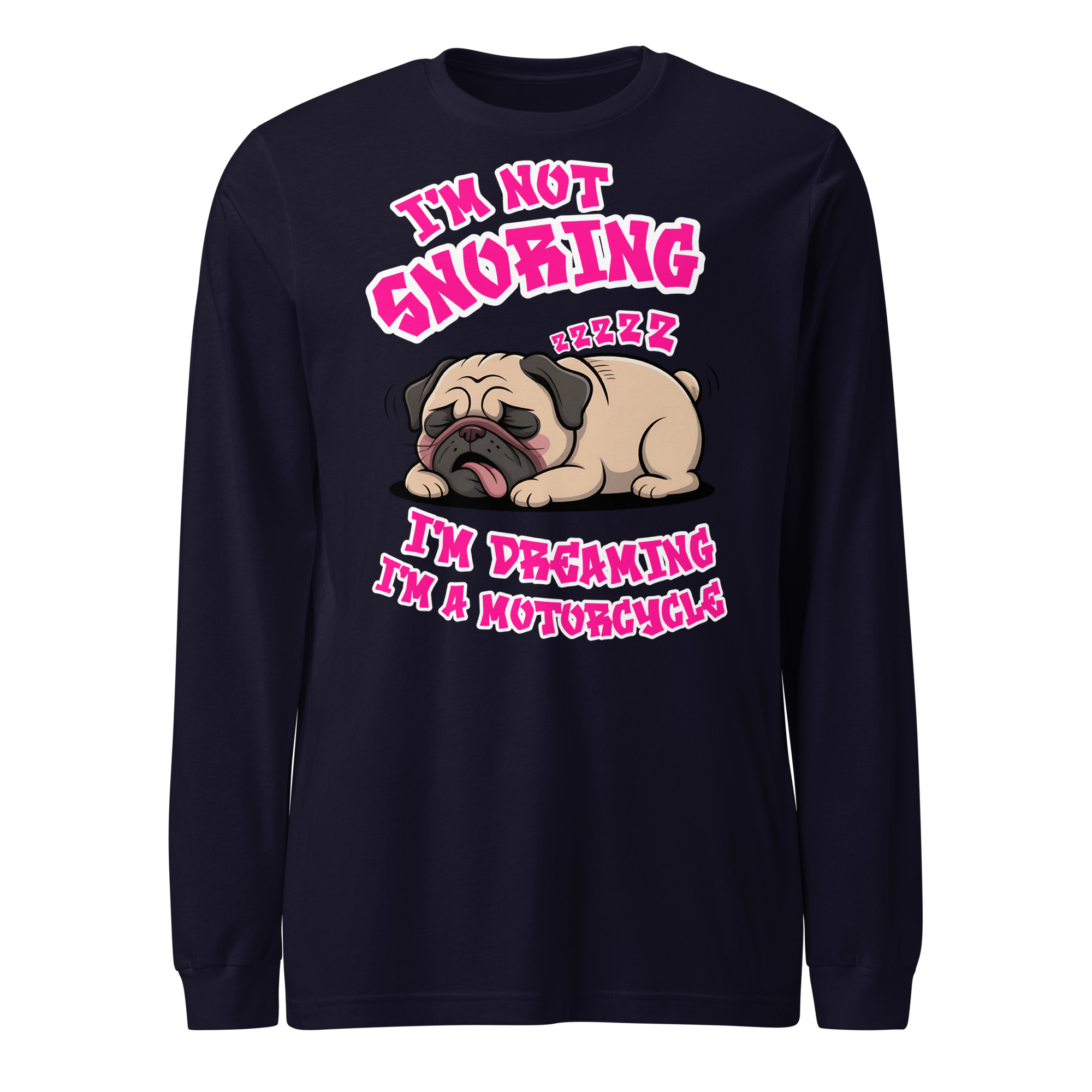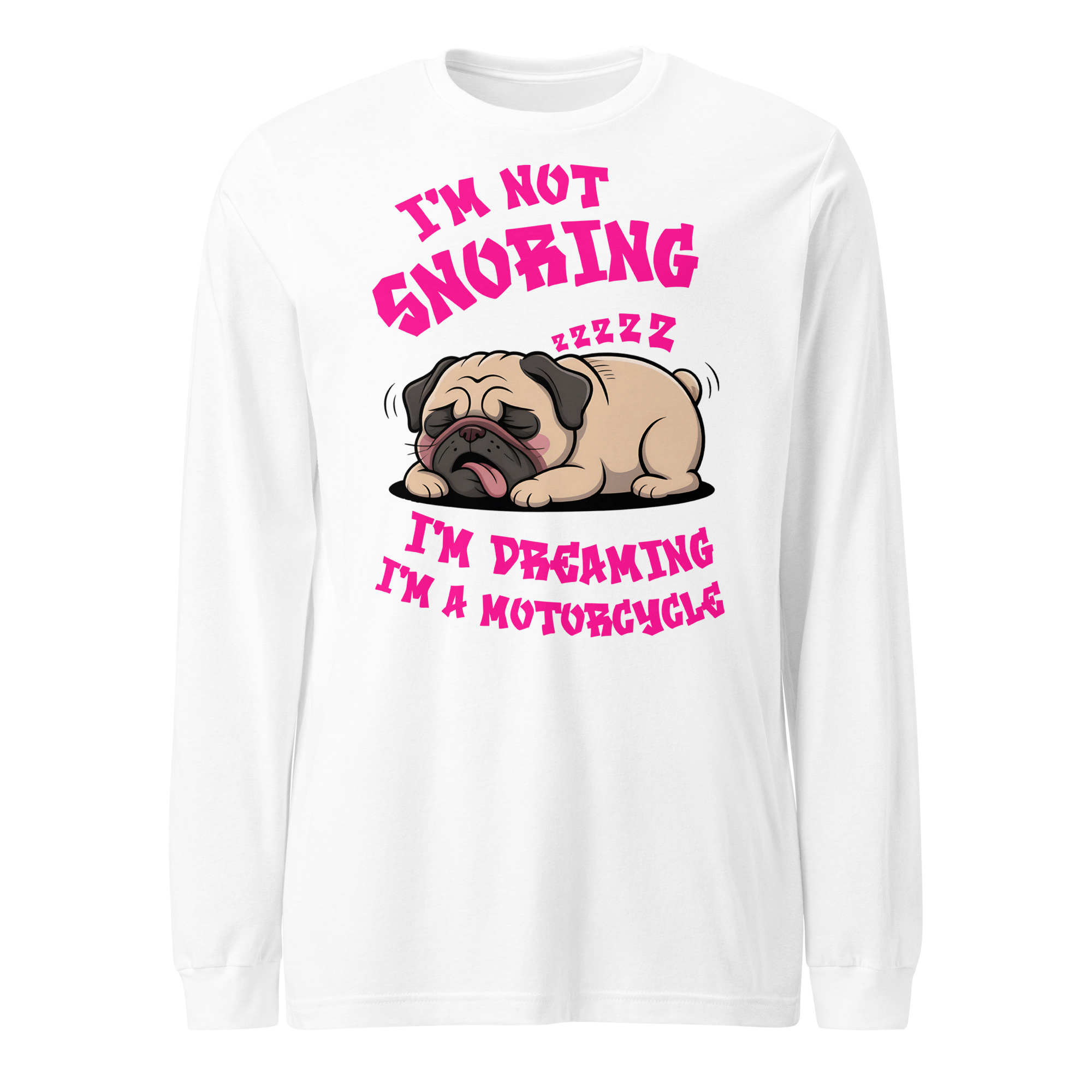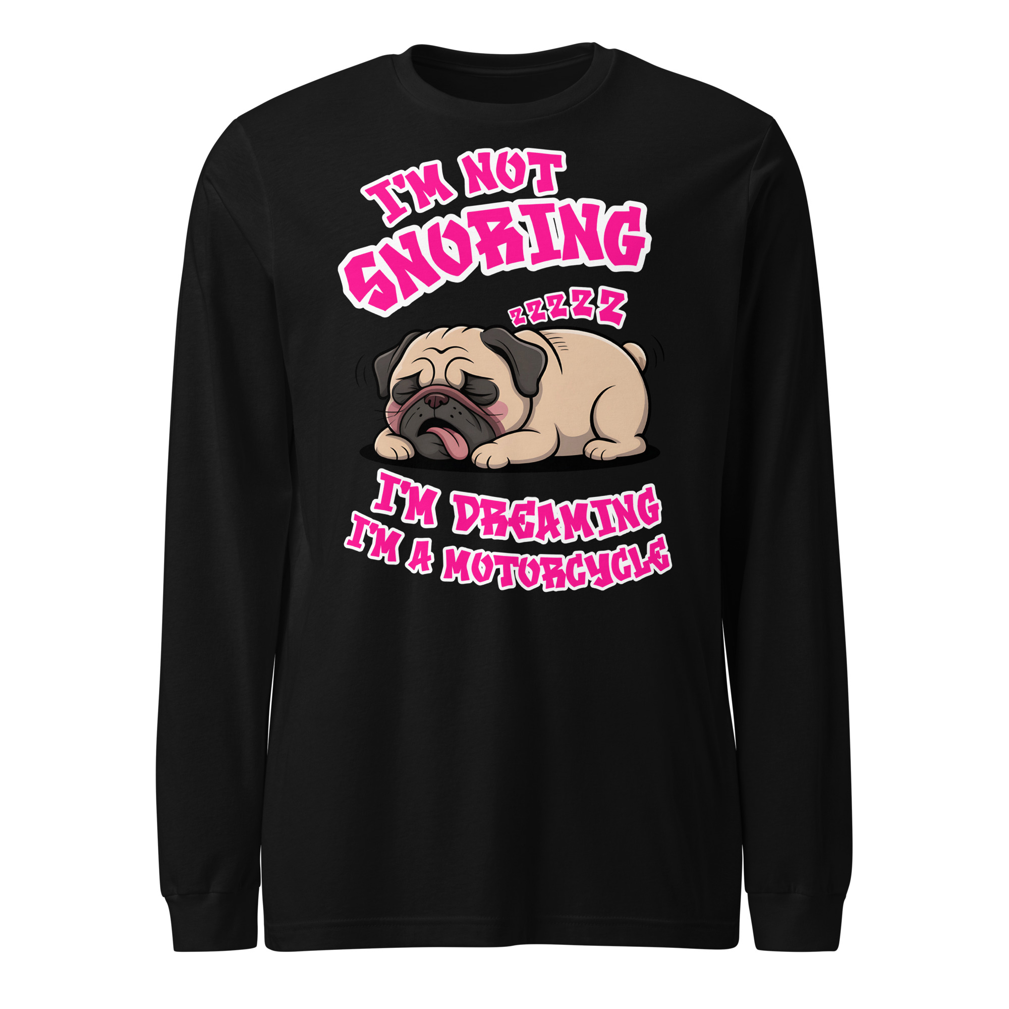 “I’m Not Snoring” Funny Pug Motorcycle Dream – Unisex Long Sleeve Tee