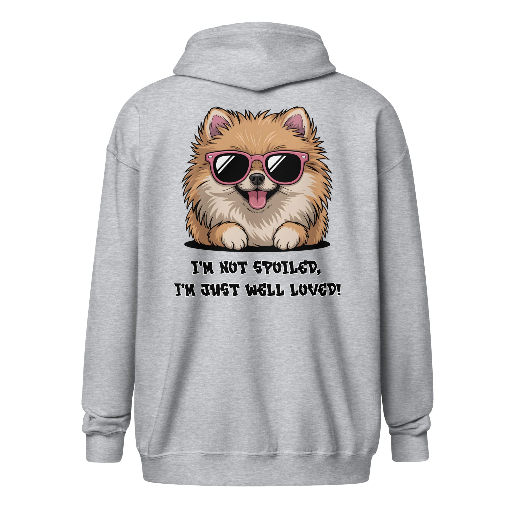 This premium zip hoodie is the perfect uniform for parents of “well-loved” pets. The front keeps things simple and stylish, while the back features an adorable Pomeranian letting everyone know the real deal: “I’m Not Spoiled, I’m Just Well Loved!”