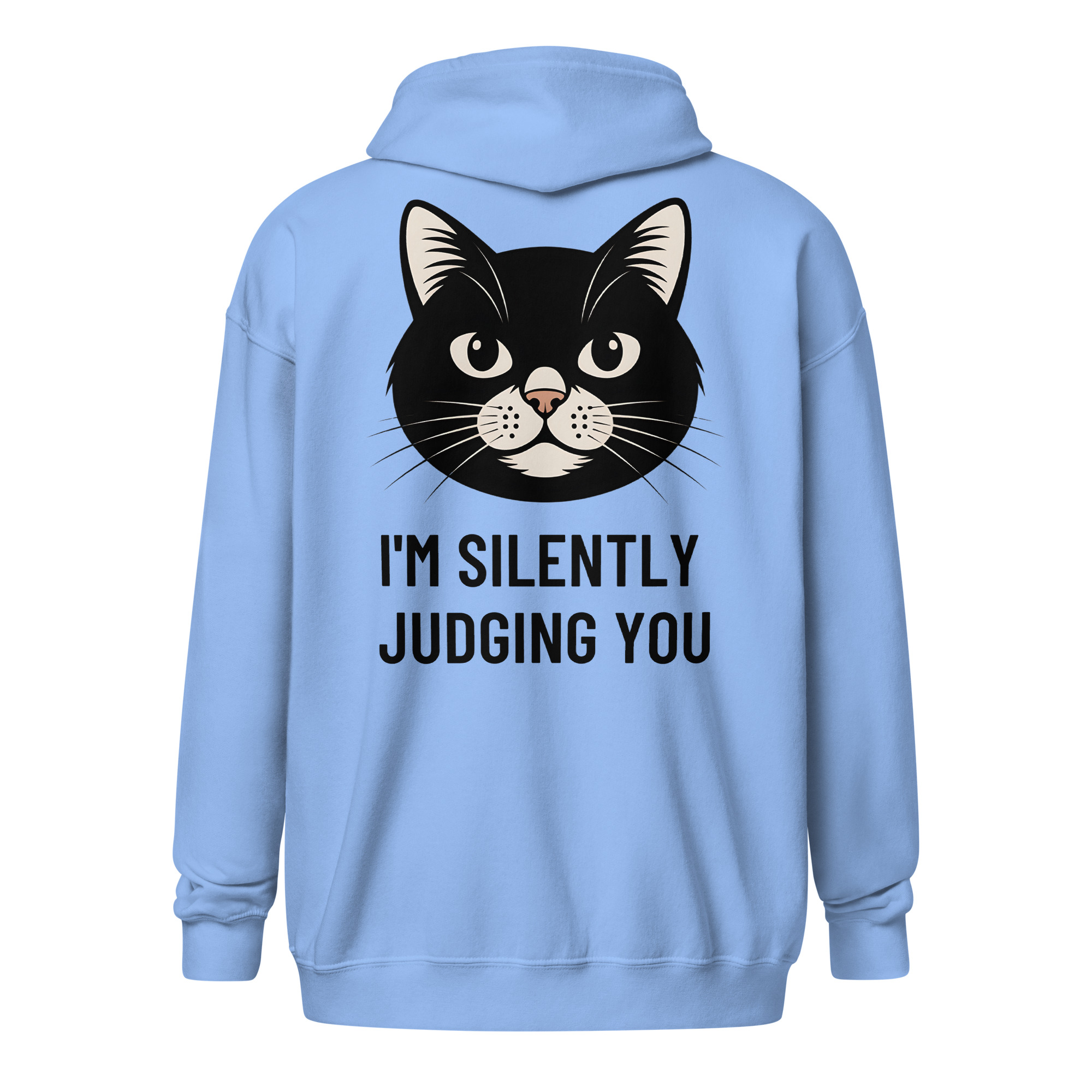 For those who appreciate both comfort and convenience, our “I’m Silently Judging You” zip hoodie is the perfect choice. This versatile jacket lets you layer your look with a heavy dose of feline sarcasm. Easy to throw on for a quick errand or to cozy up in on a cool evening, it’s the ultimate go-to for cat lovers on the move.