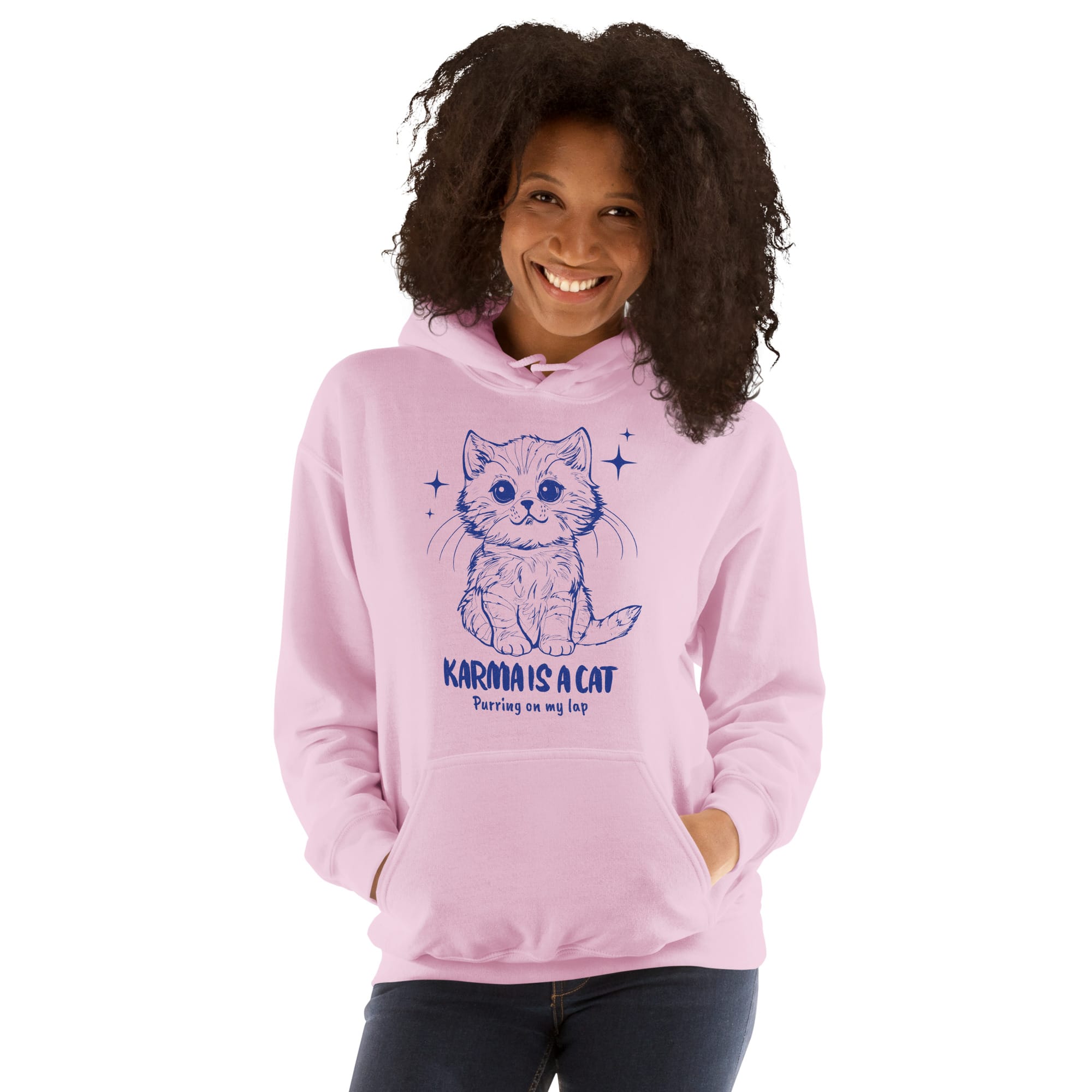 Wrap yourself in good karma and cuteness! This soft and stylish Unisex Hoodie features the iconic lyric “KARMA IS A CAT Purring on my lap” below an adorable, sketch-style kitten. It’s the perfect choice for Swifties and cat lovers who want a cozy piece of apparel for cooler evenings, concert tailgates, or just lounging with their own feline companion.