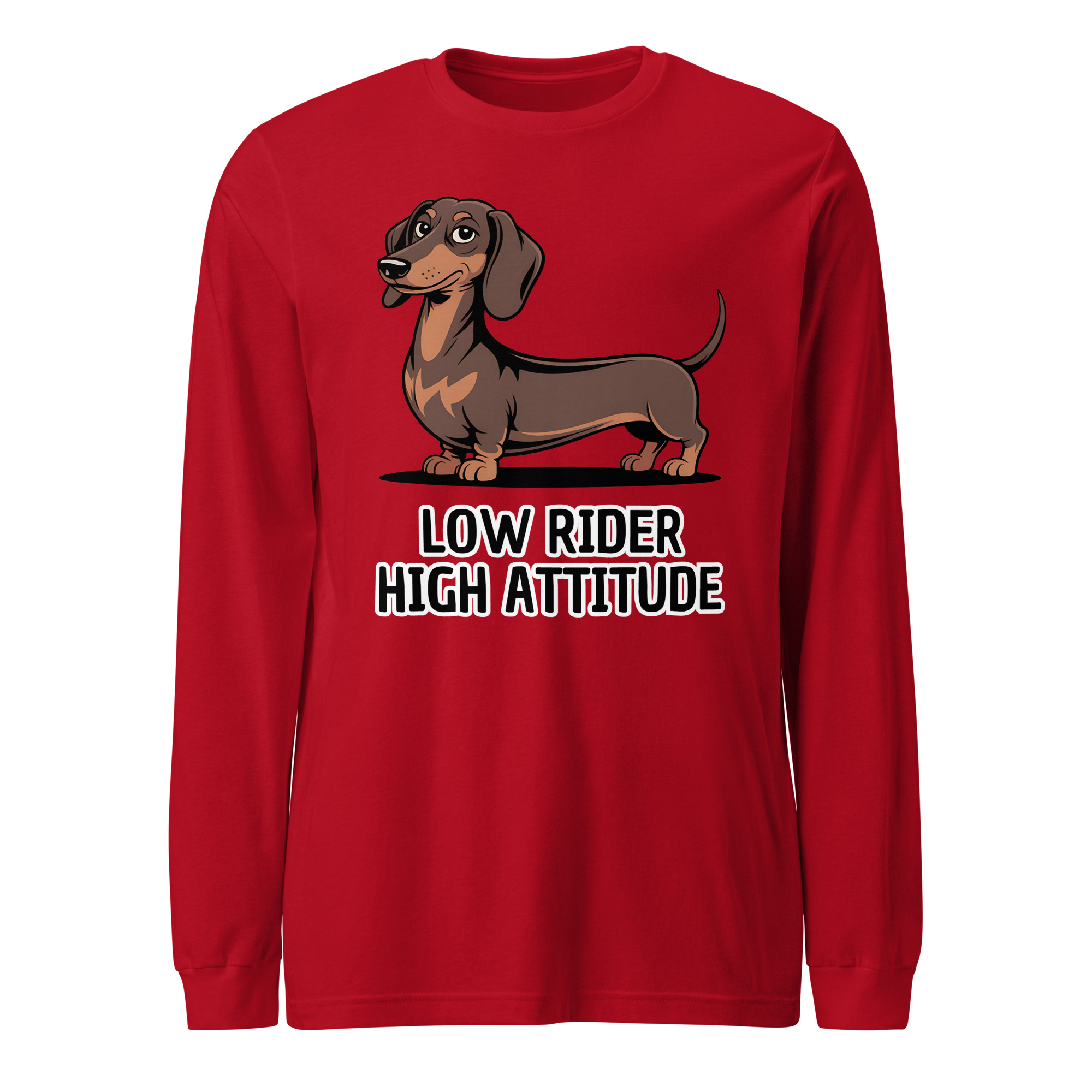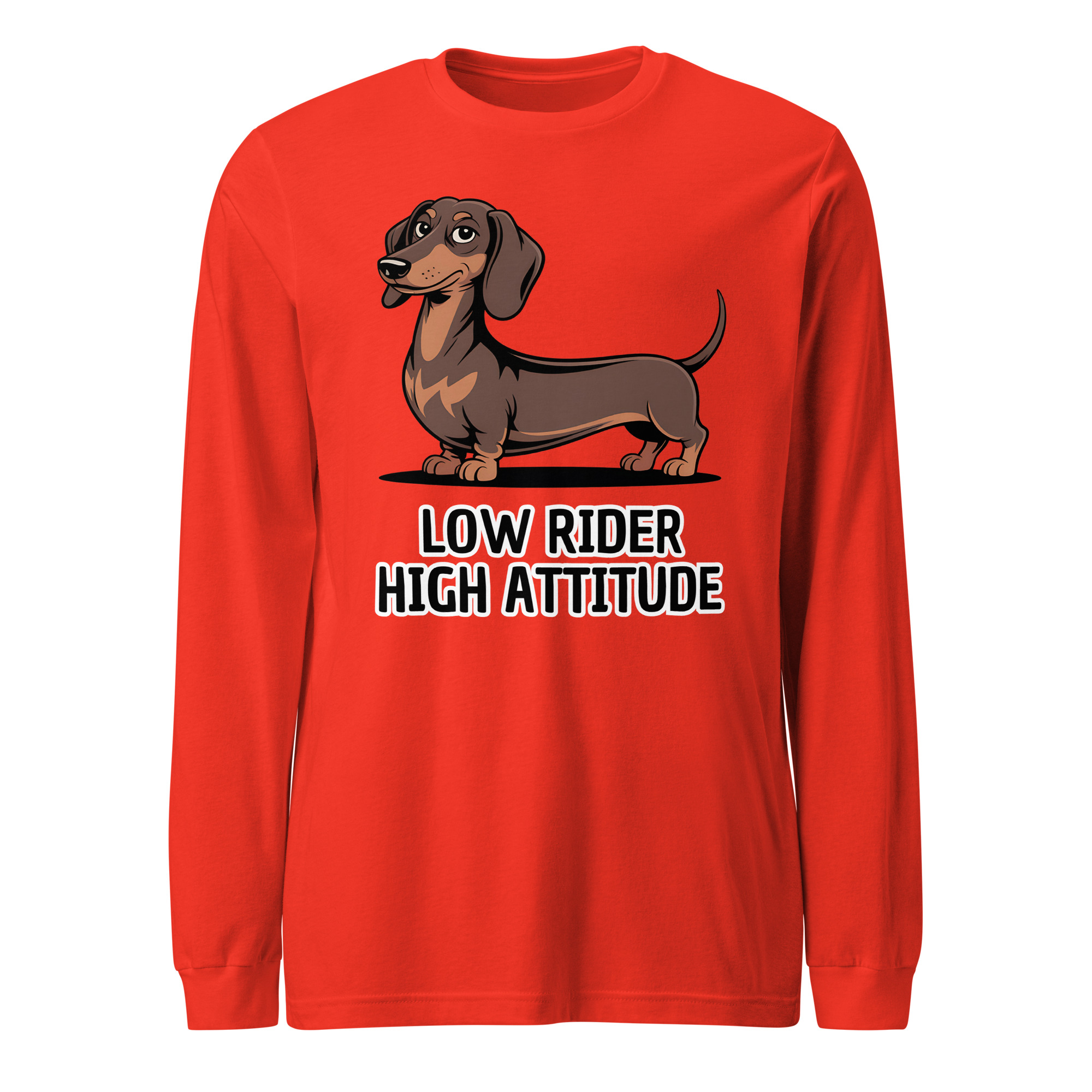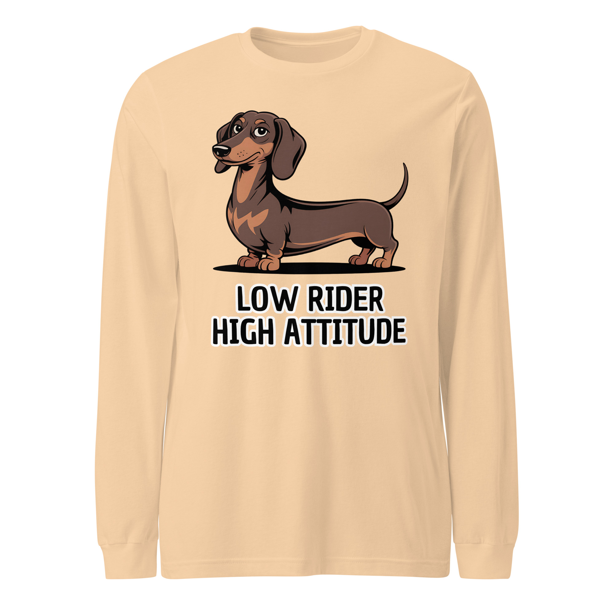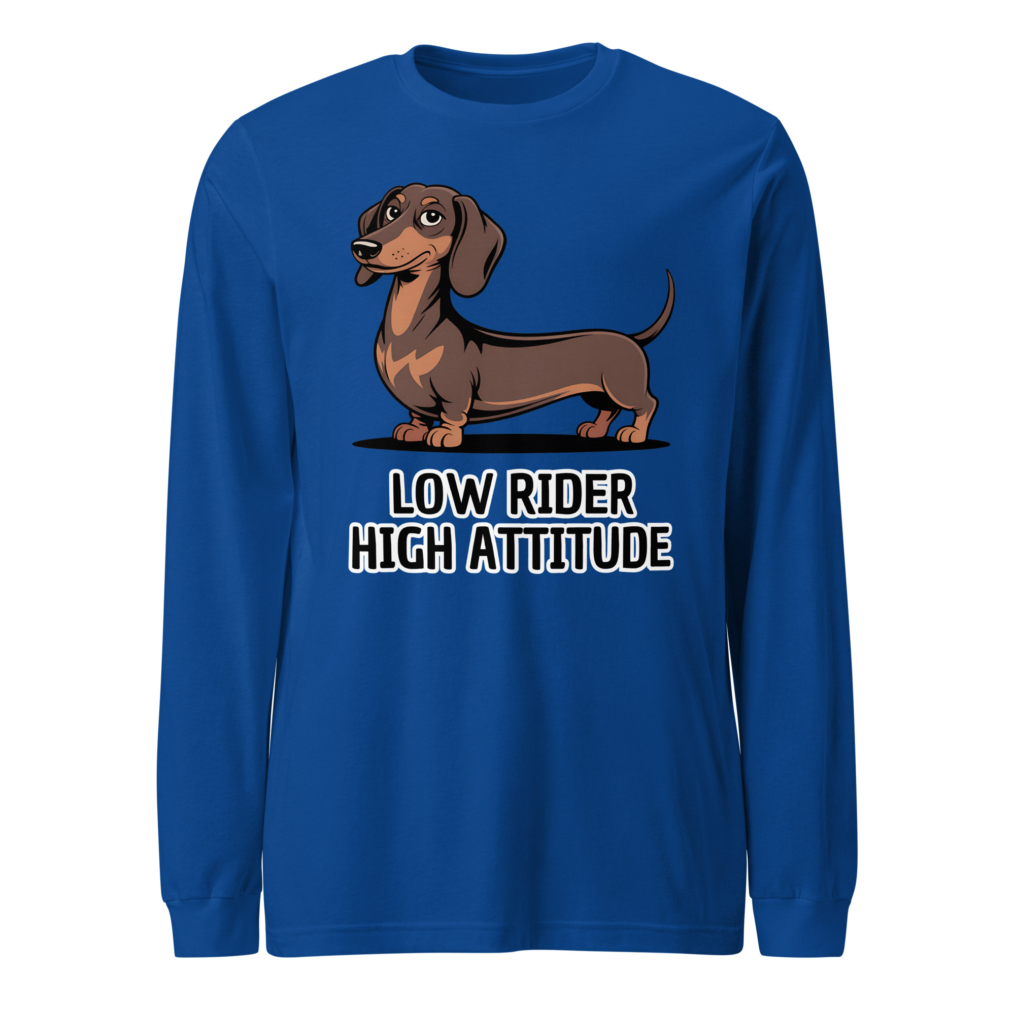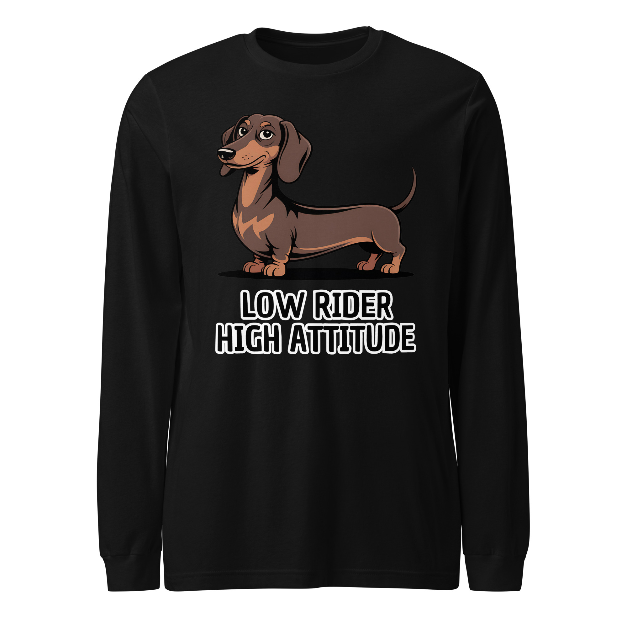 Show off your love for the sassiest breed around with this “Low Rider, High Attitude” long sleeve tee. It’s the perfect way to celebrate your Dachshund’s larger-than-life personality while staying comfortable and stylish. This isn’t just a shirt; it’s a statement piece for anyone who understands the unique charm of a wiener dog.