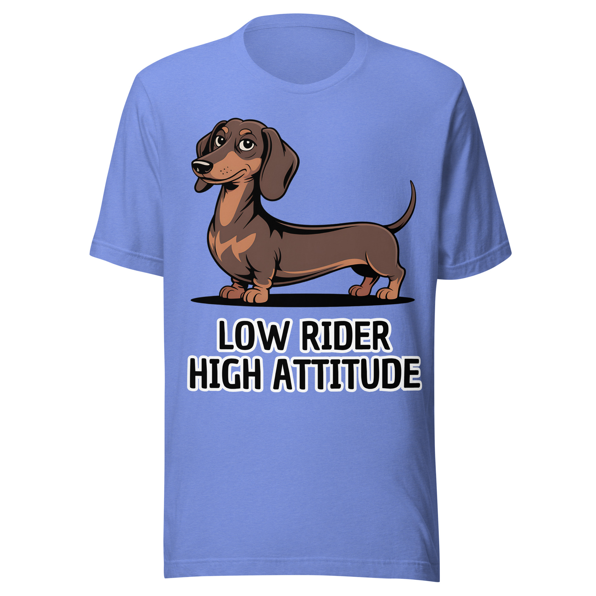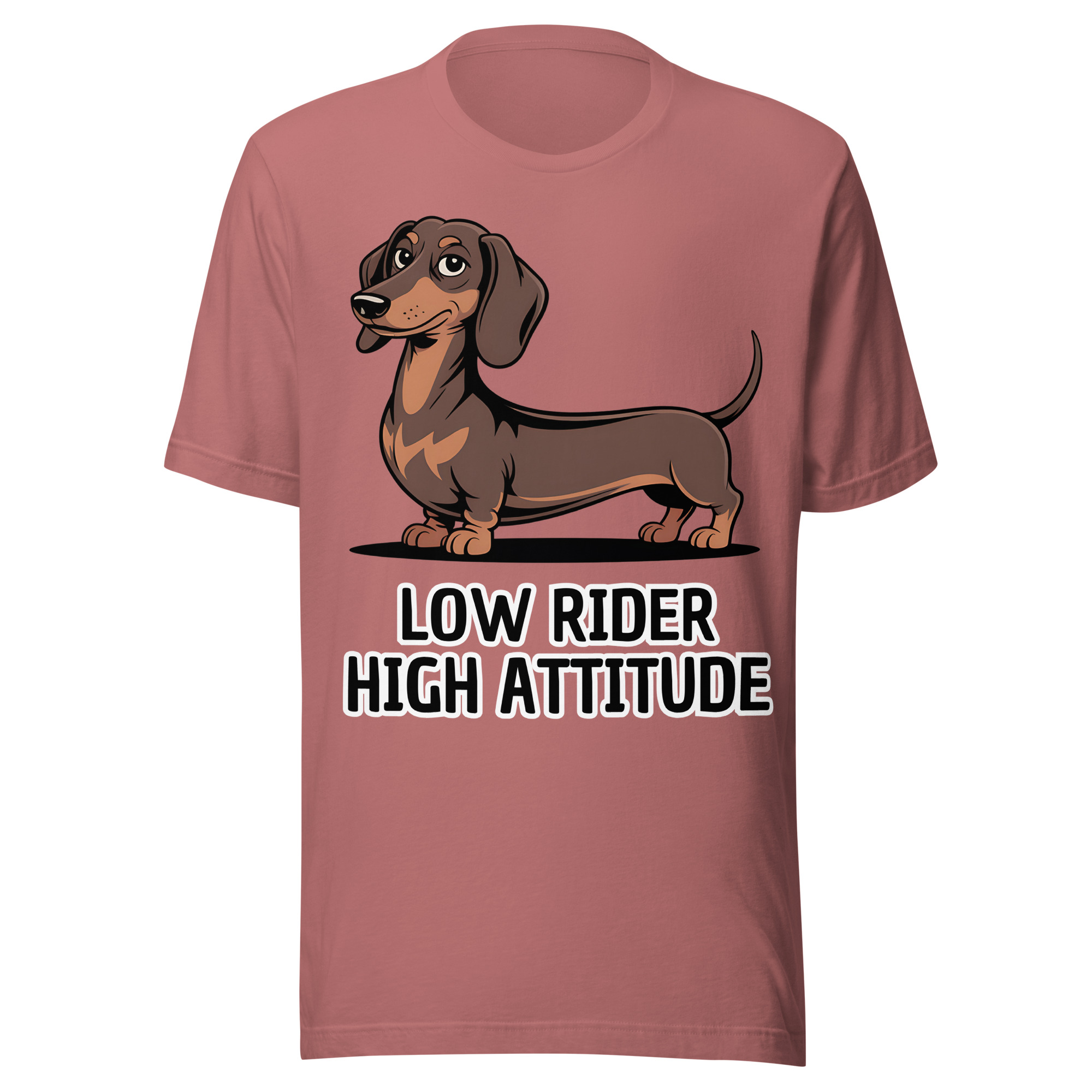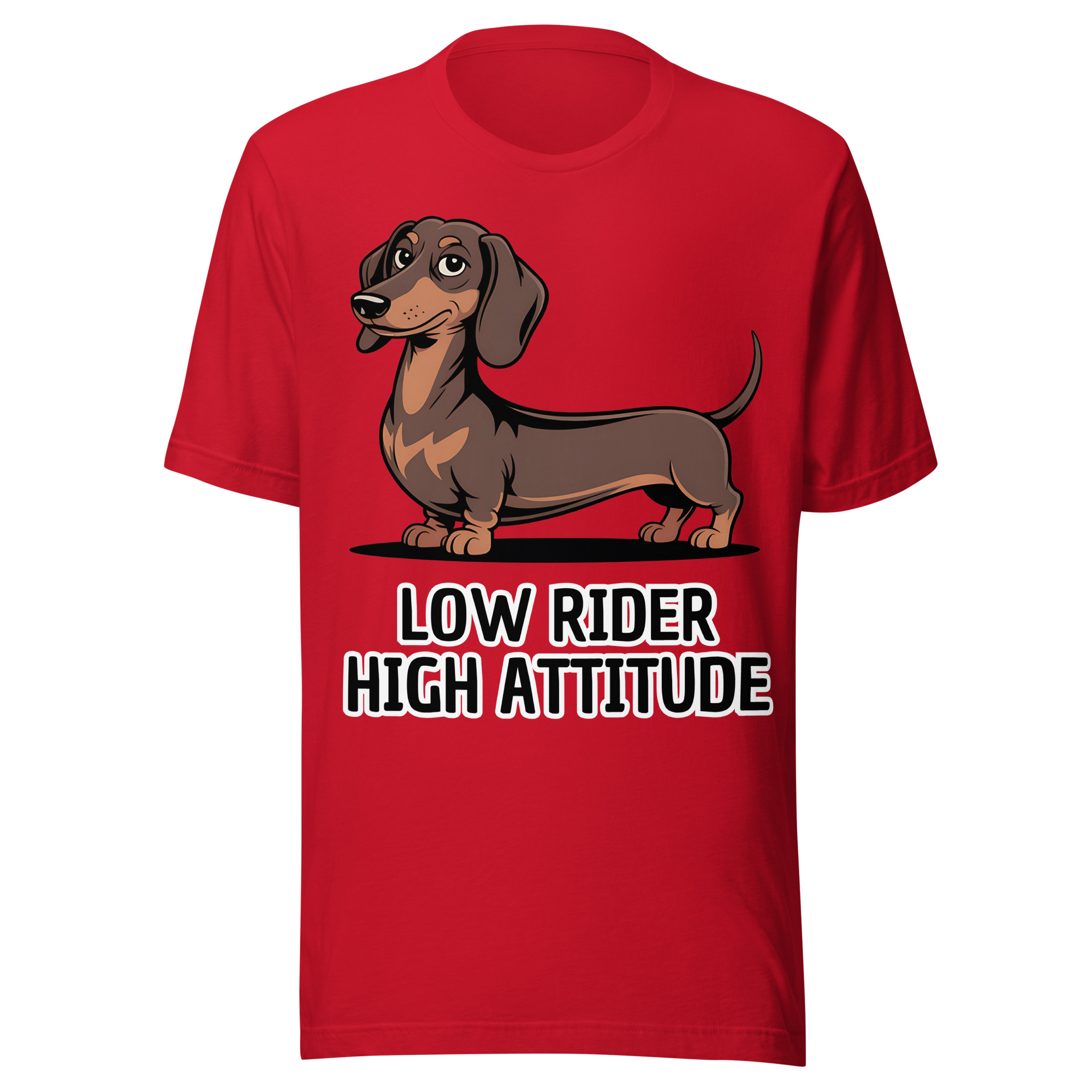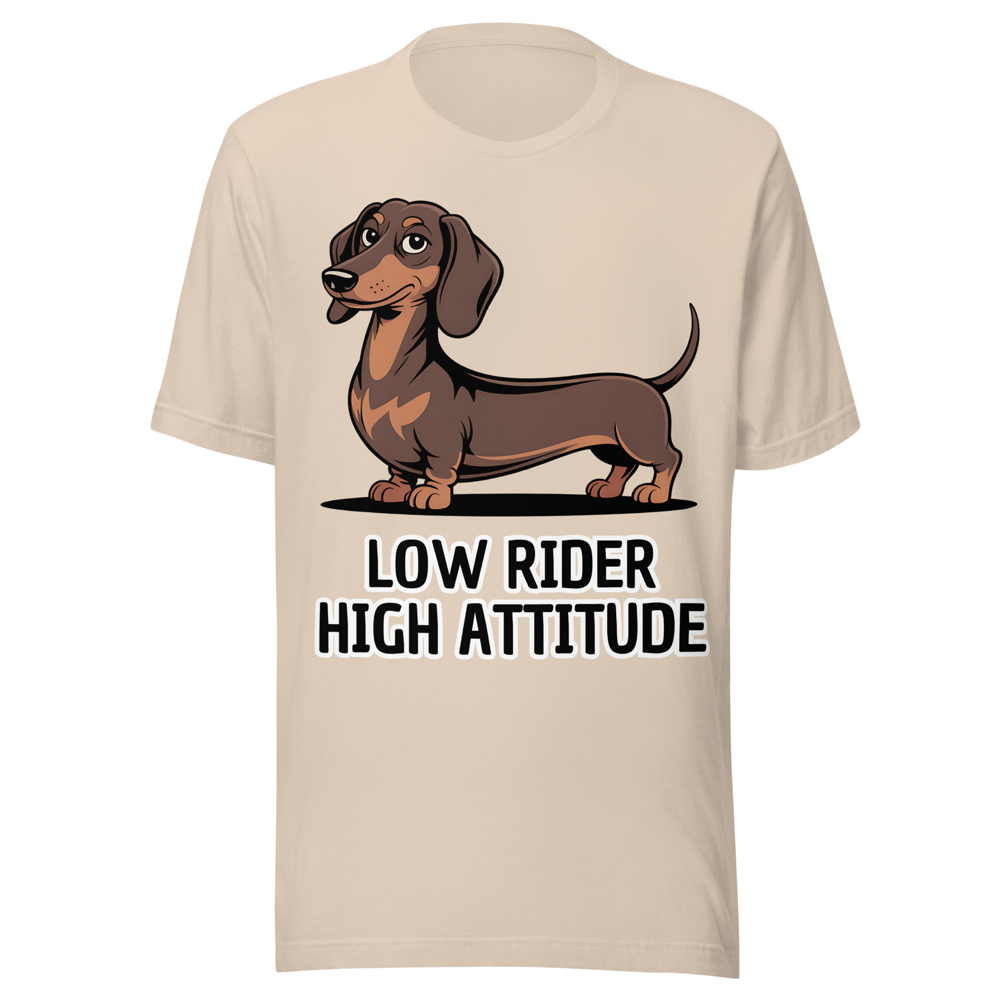 Celebrate the sassiest pup on the block with this “Low Rider, High Attitude” t-shirt! If you’re a proud Dachshund parent, you know that what they lack in height, they more than make up for in personality. This shirt perfectly captures the bold, confident, and utterly charming spirit of the beloved wiener dog.
