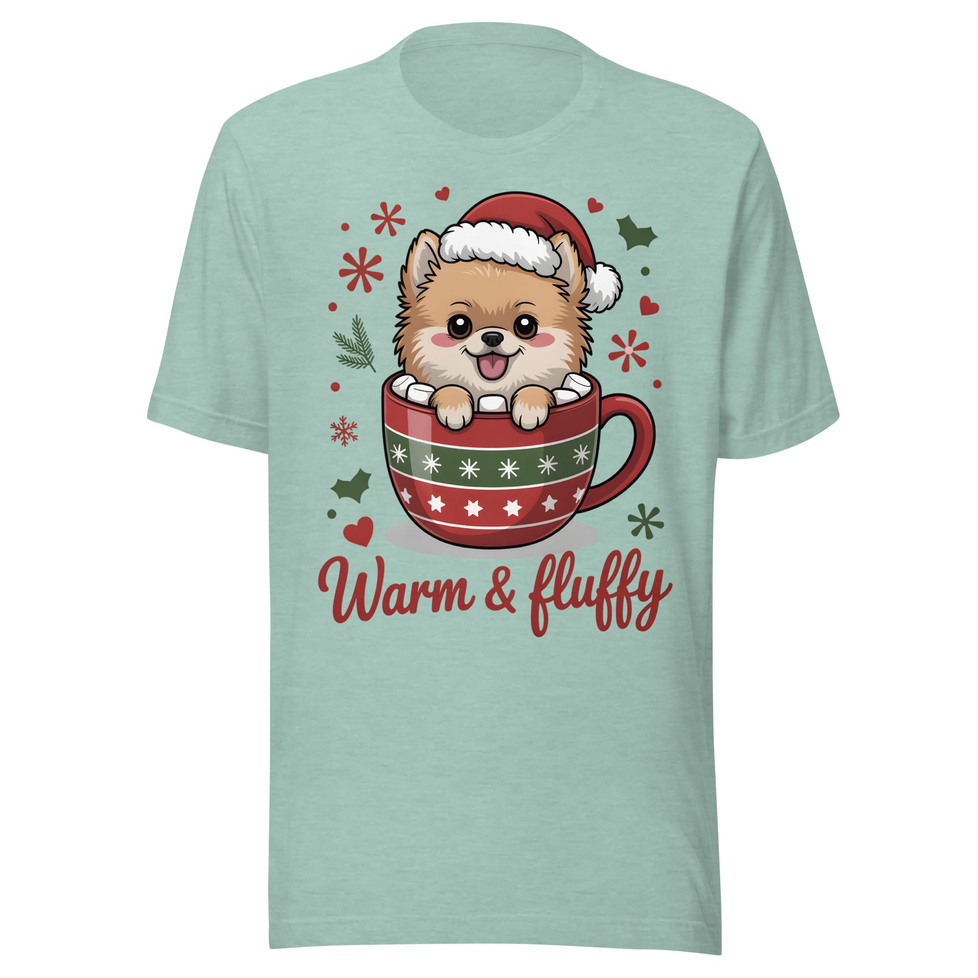 Ready for the ultimate holiday comfort? Our Pomeranian Christmas T-Shirt features a heartwarming design of a tiny puppy nestled in a festive hot chocolate mug with marshmallows. Capturing the essence of winter coziness, this “Warm & Fluffy” tee is a must-have for all pet parents and a wonderful way to spread holiday cheer for dog moms and dads everywhere.