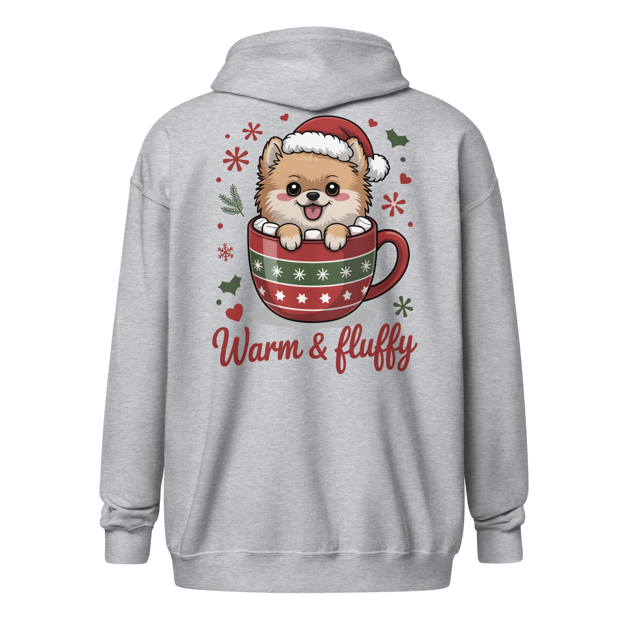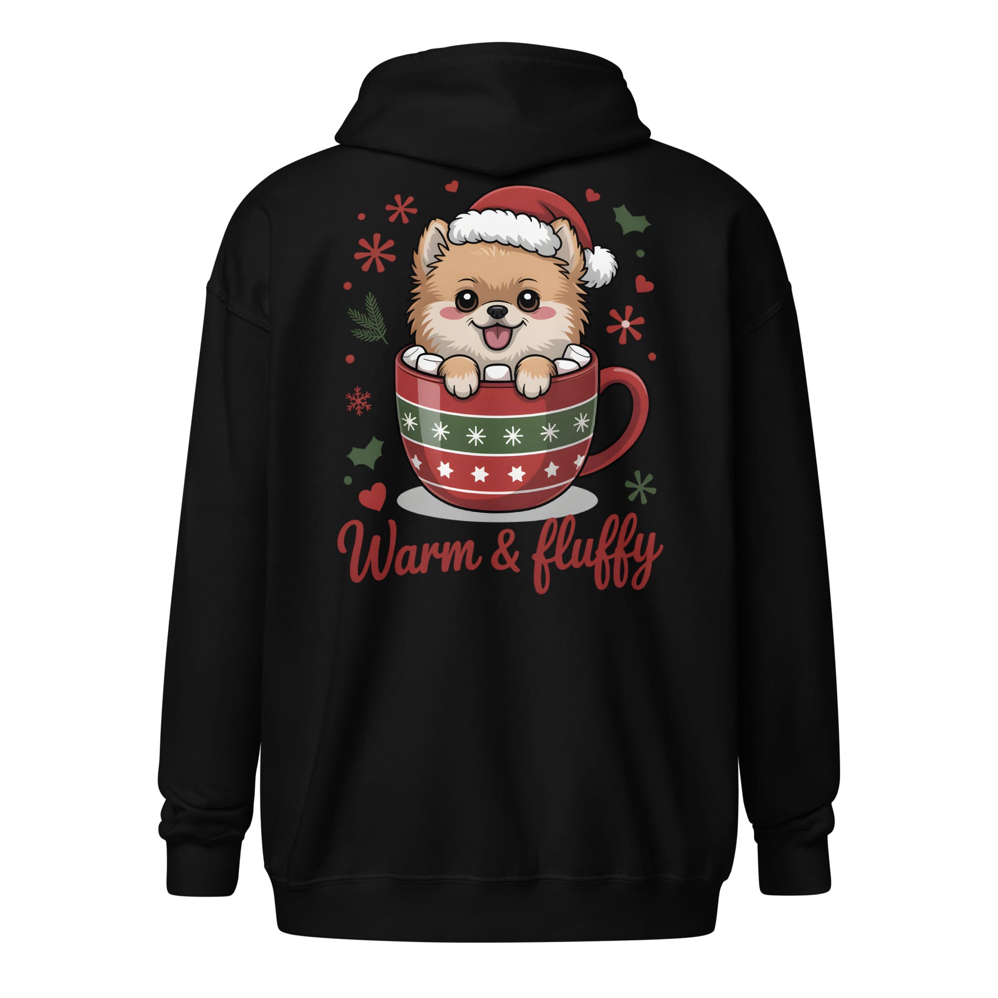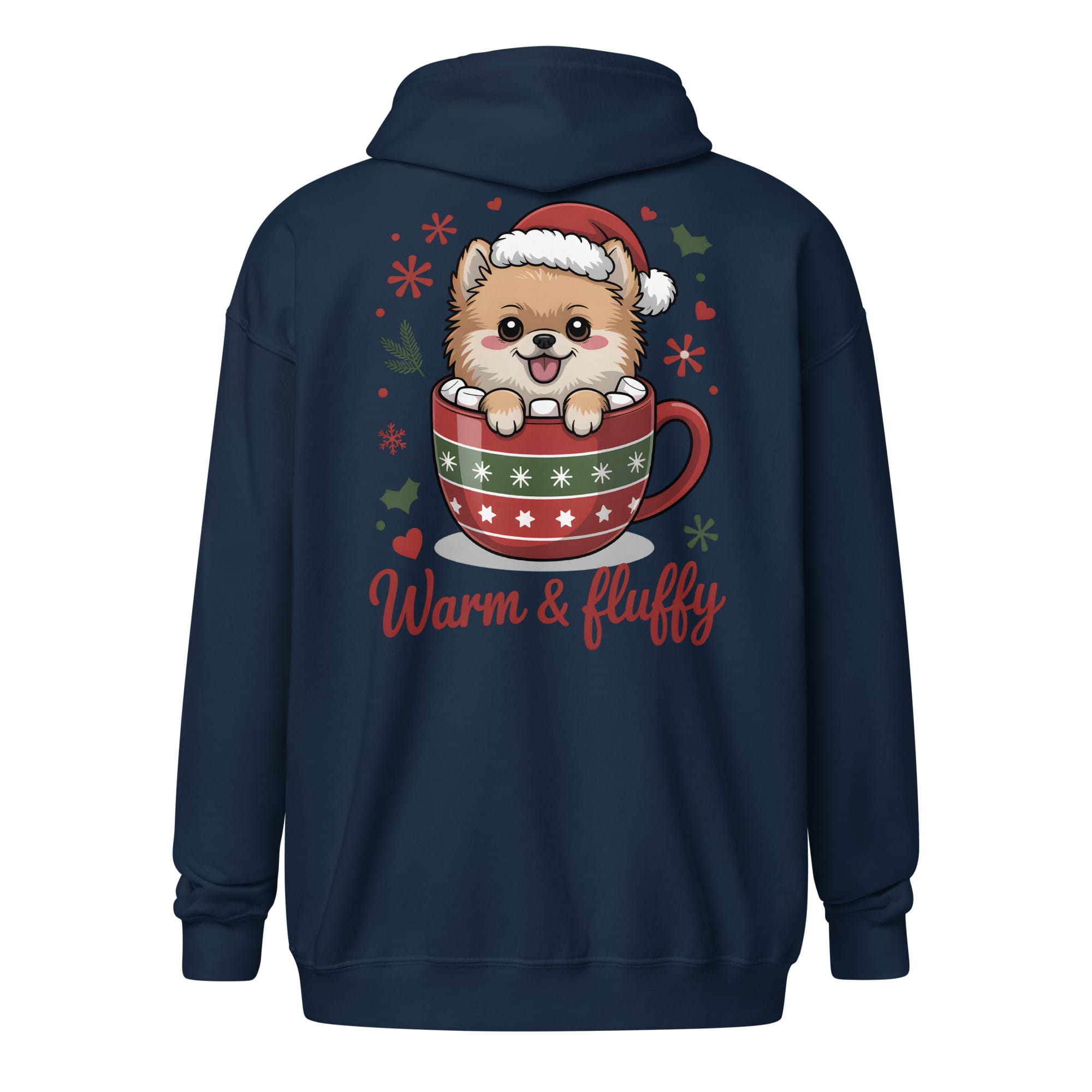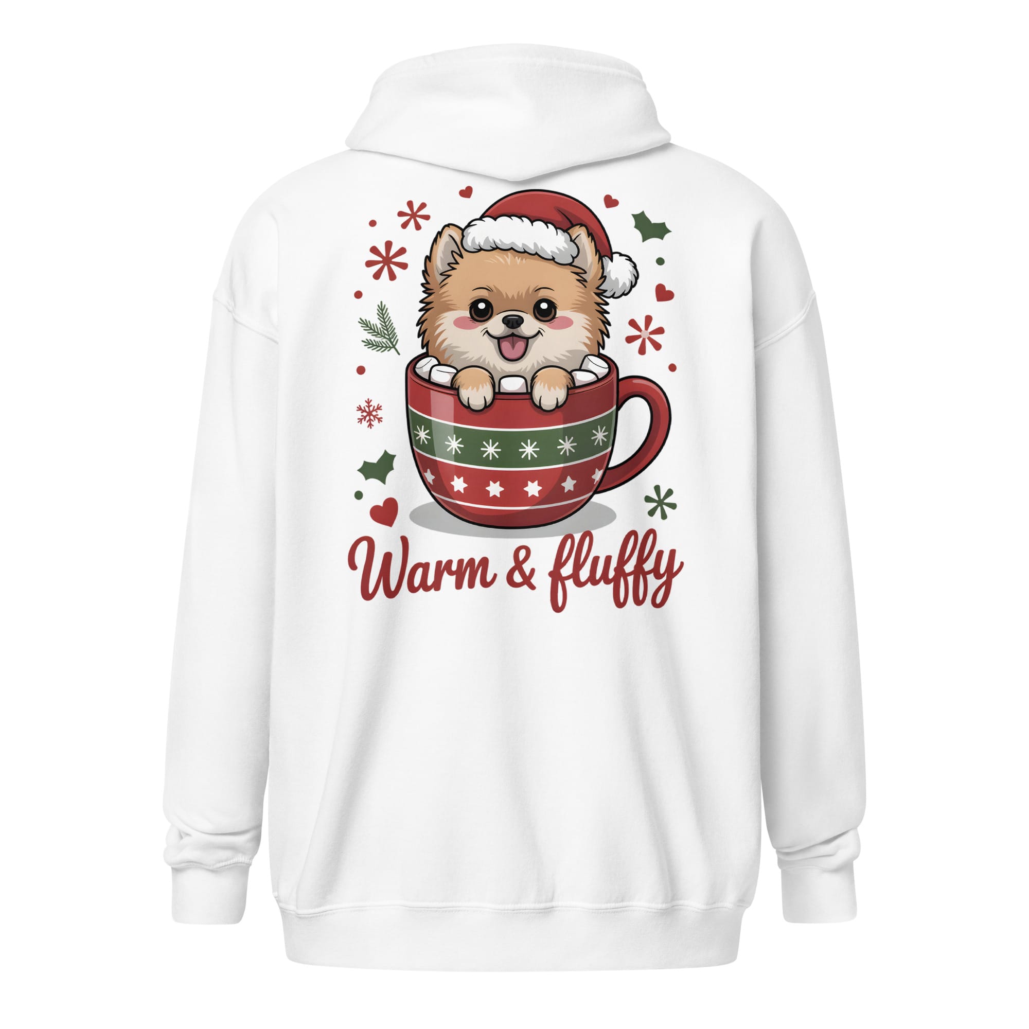 There is no joy quite like the company of a Pomeranian during the holidays. Our Unisex Zip Hoodie combines functionality and style with the heartwarming “Warm & Fluffy” design printed prominently on the back. This graphic showcases an adorable puppy nestled in a festive mug, making it the perfect heavy layer for all pet parents enjoying winter walks or relaxing by the fire. A great way to spread cheer for dog moms and dads everywhere.
