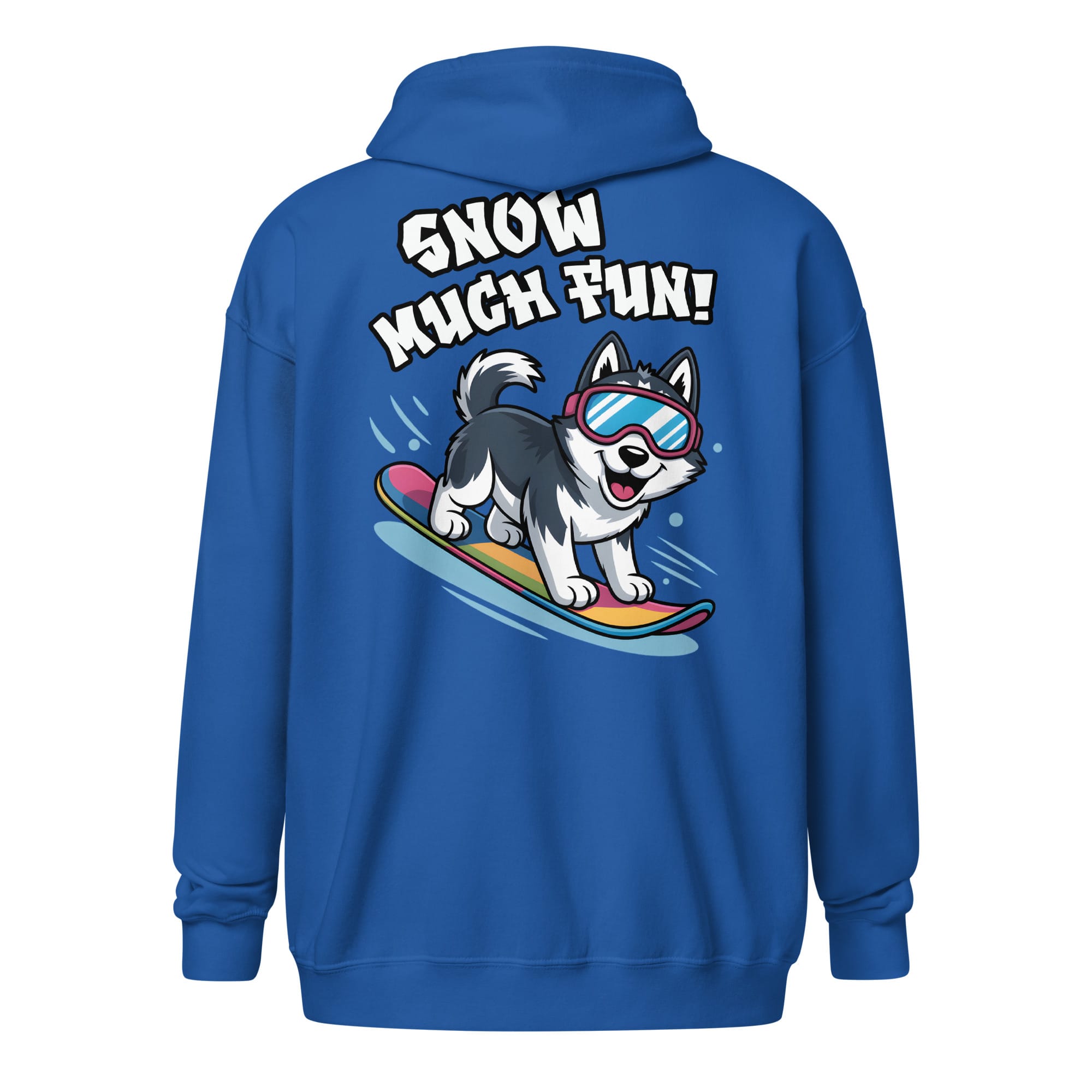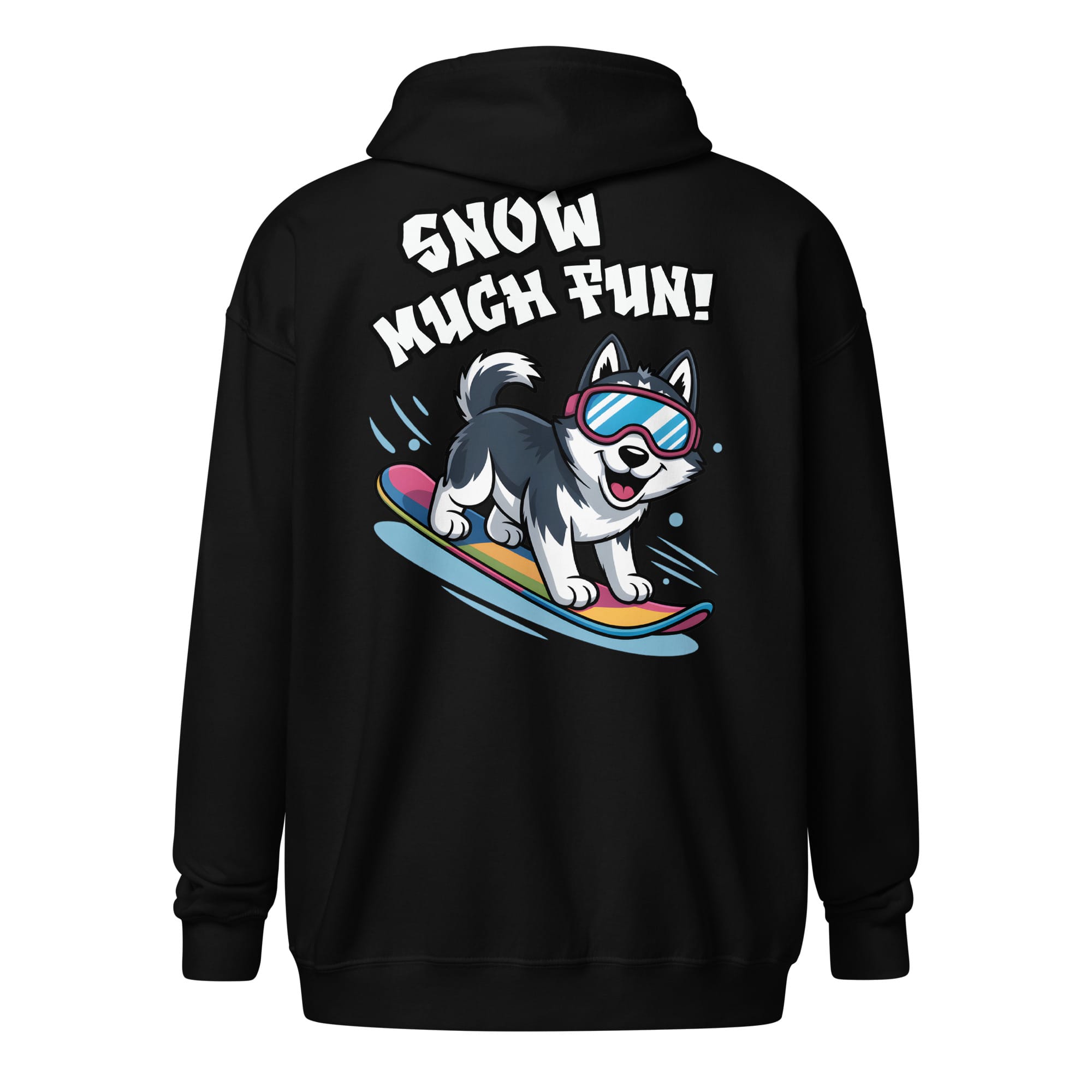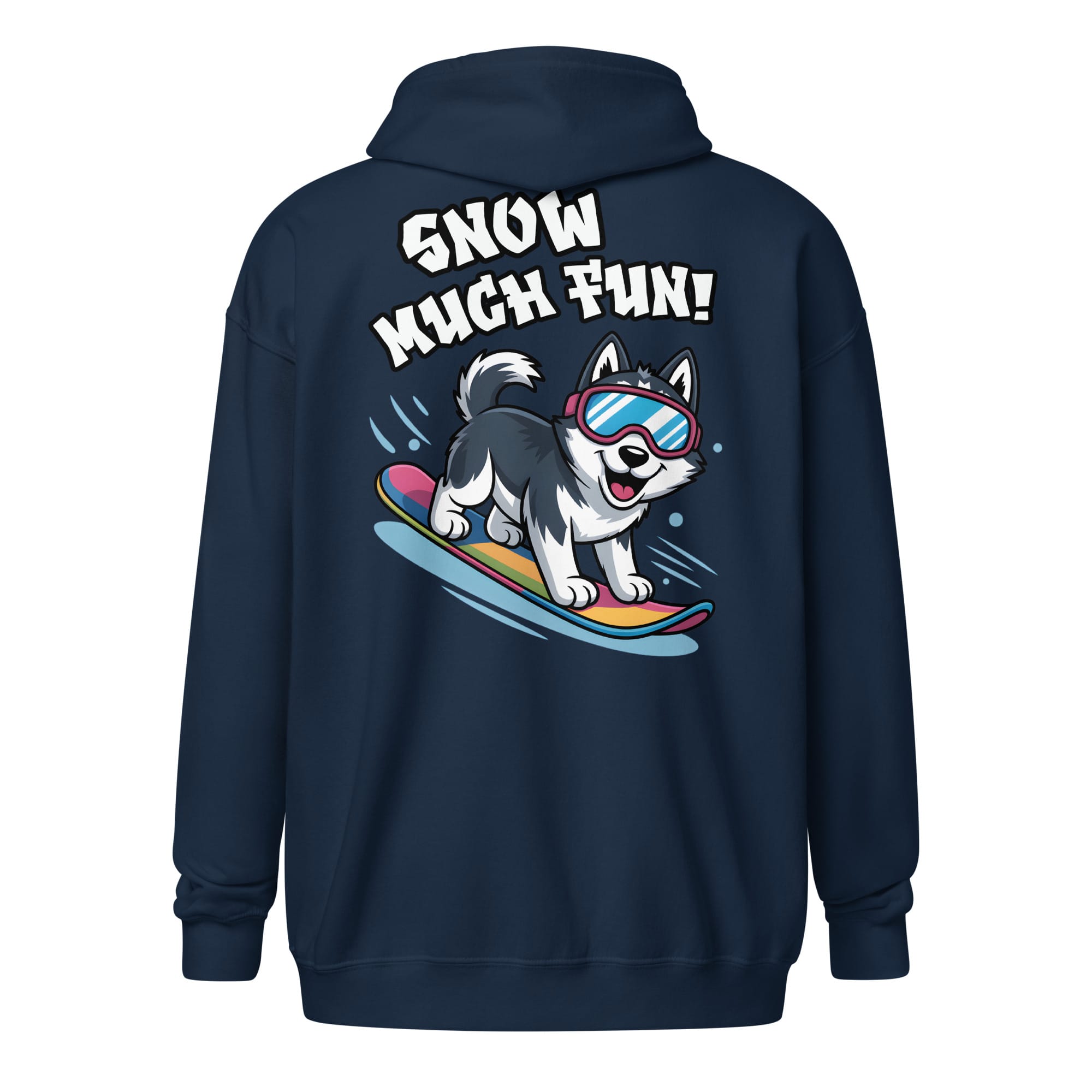 Ready for epic winter adventures? Our Unisex Zip Hoodie combines functionality and style with the energetic “Snow Much Fun!” design printed prominently on the back. Featuring an adorable Siberian Husky rocking goggles while snowboarding, this heavy layer is a heartwarming addition for all pet parents and a great way to spread cheer for dog moms and dads everywhere. Perfect for staying warm during winter sports or casual snowy days.