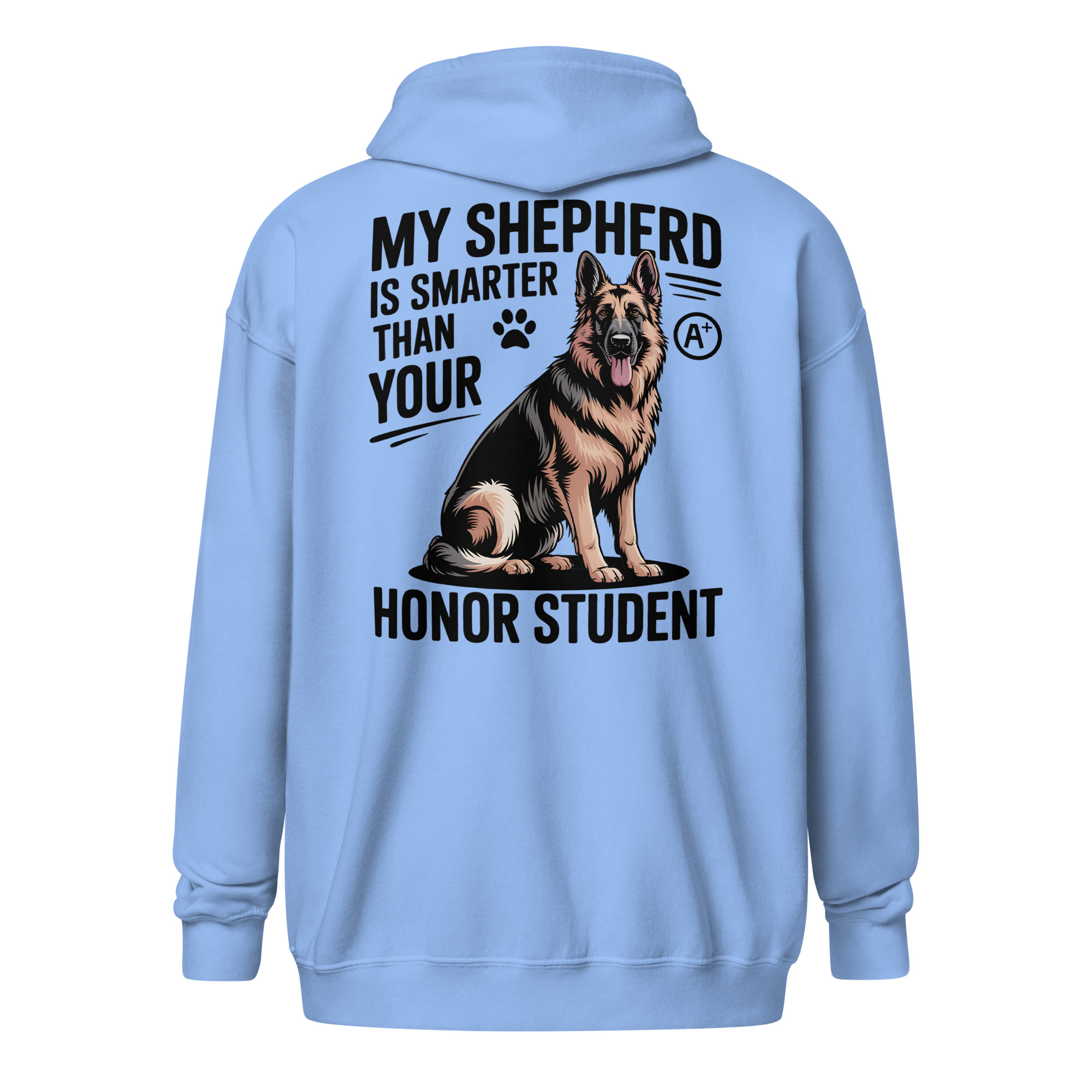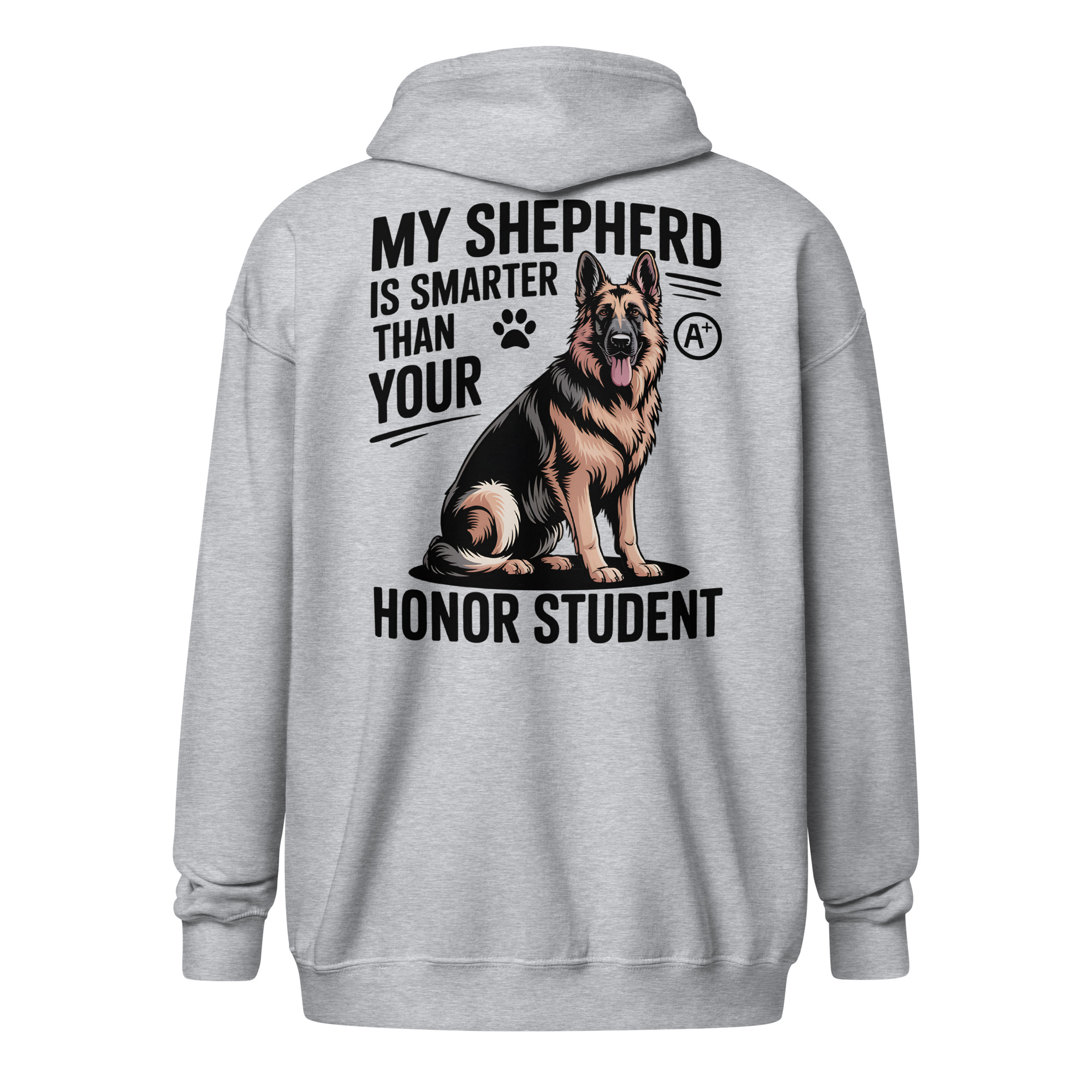 Meet your new favorite layering piece. This zip hoodie offers a clean, minimalist style from the front, but turn around and let your back do all the bragging. It’s the perfect way to proudly declare what every German Shepherd owner already knows: your dog is a certified genius.