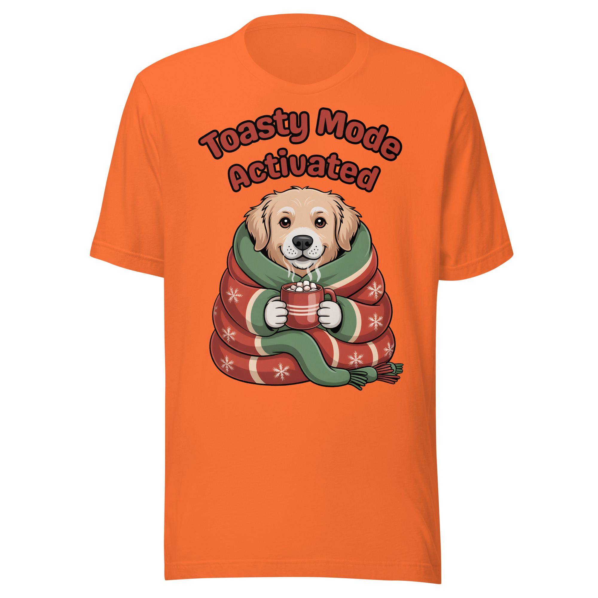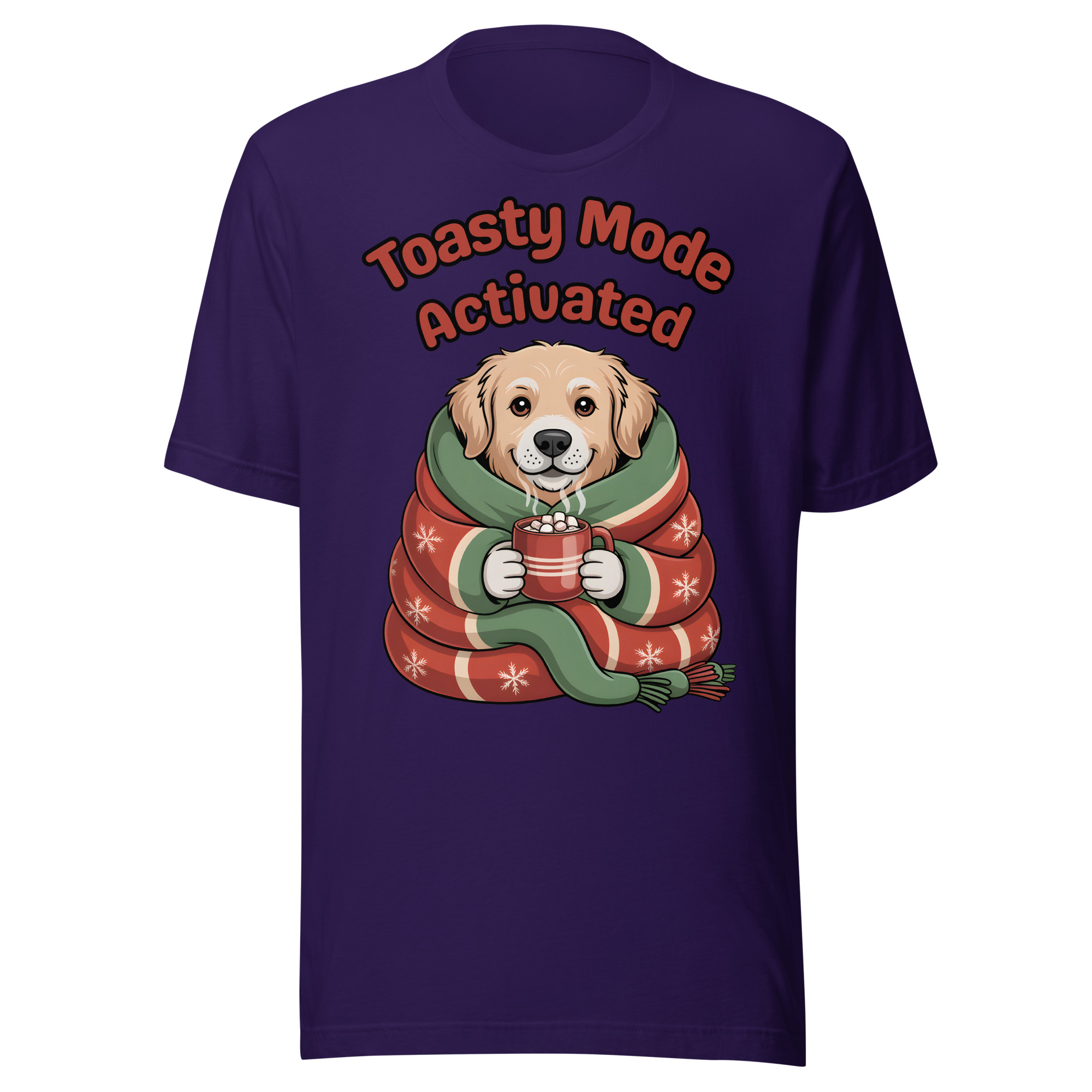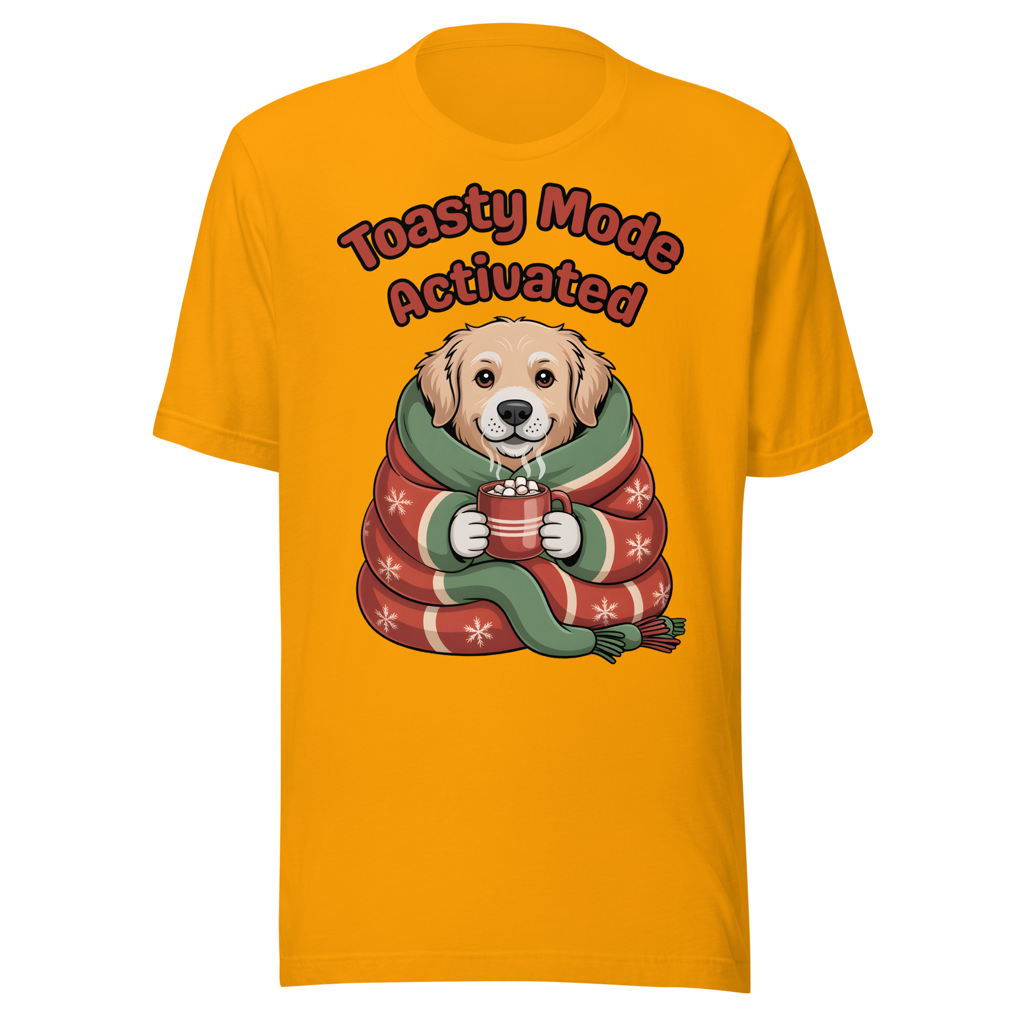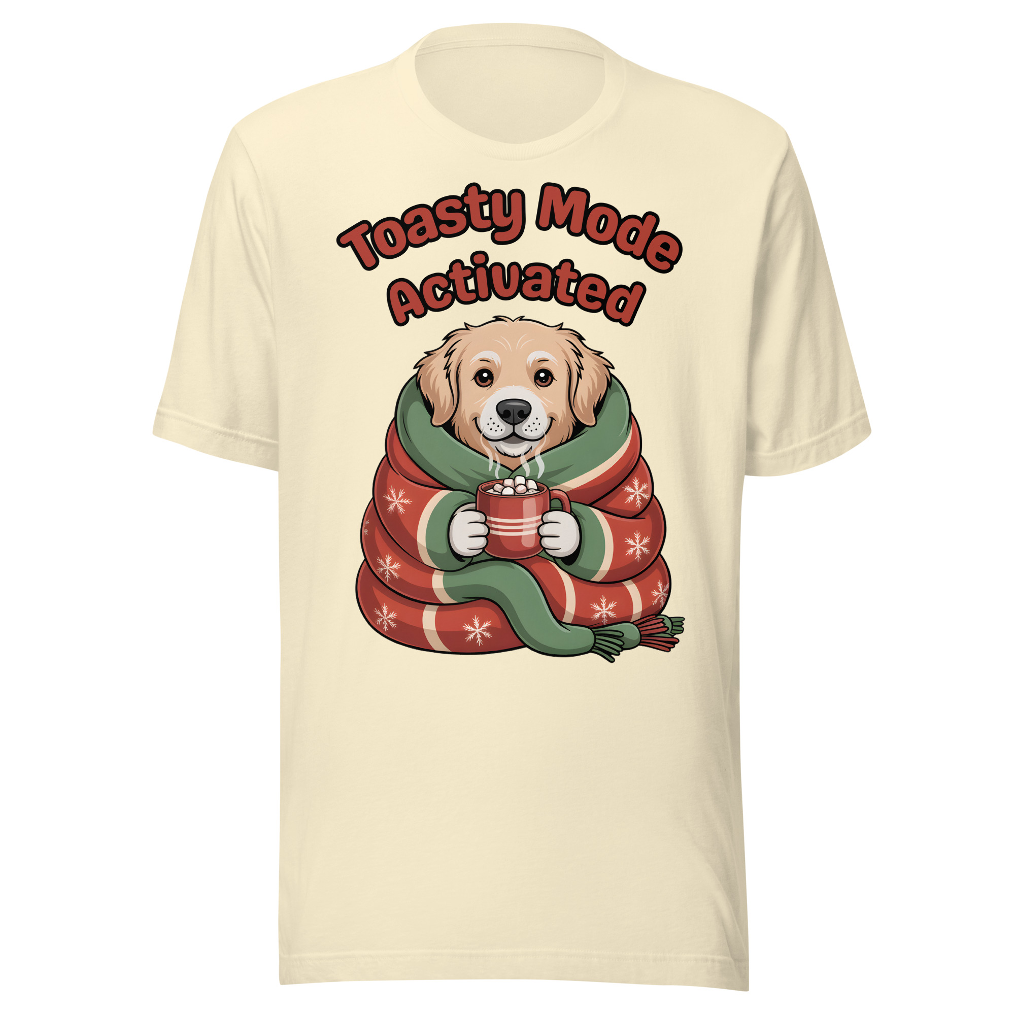 Is your Golden Retriever the definition of cozy? This adorable and witty Unisex T-shirt is perfect for dog lovers who embrace winter hibernation! It features a sweet Golden Retriever puppy wrapped snugly like a burrito in a festive blanket, holding a tiny mug of hot cocoa. The cheerful text “Toasty Mode Activated” confirms that the dog (and you!) are fully committed to comfort this season.