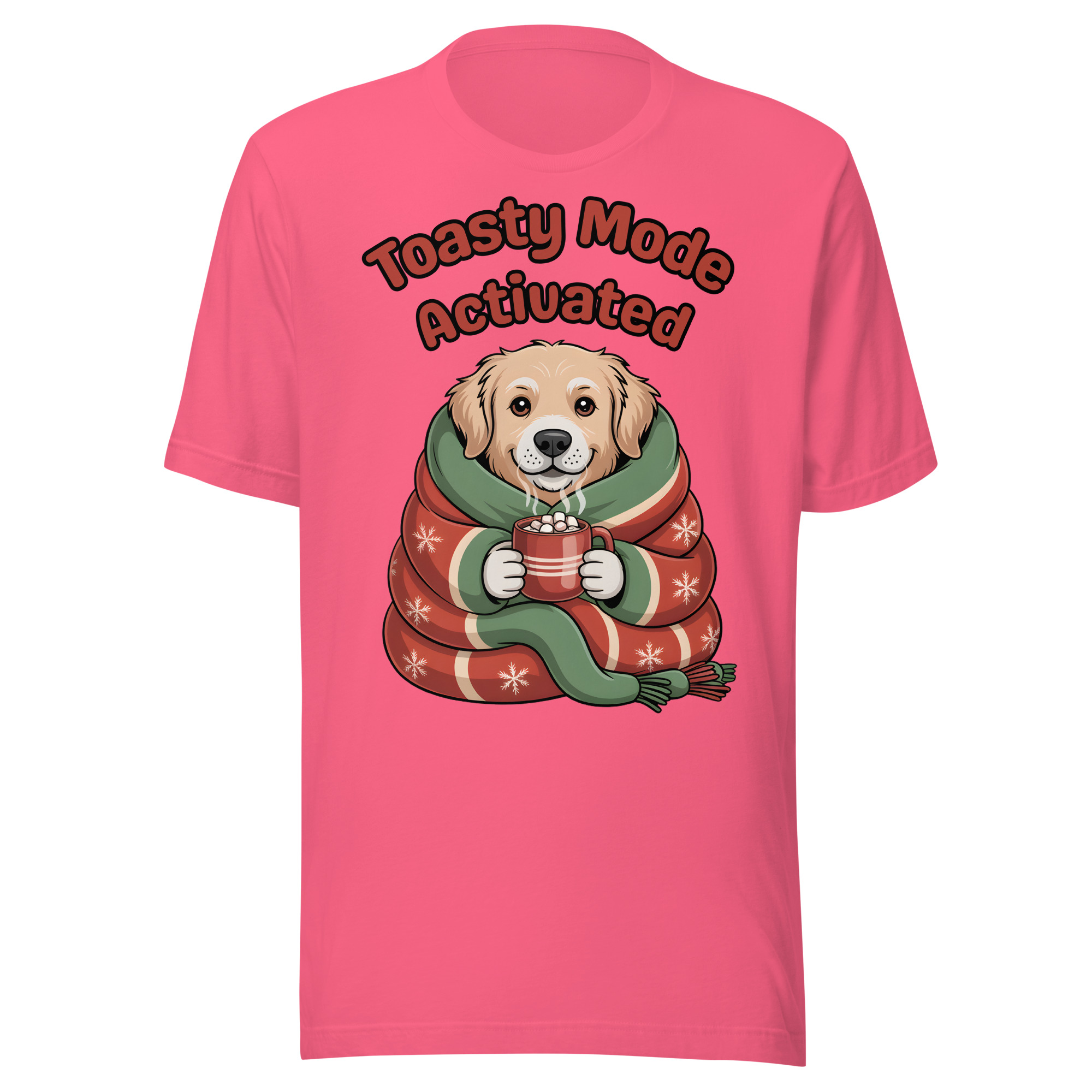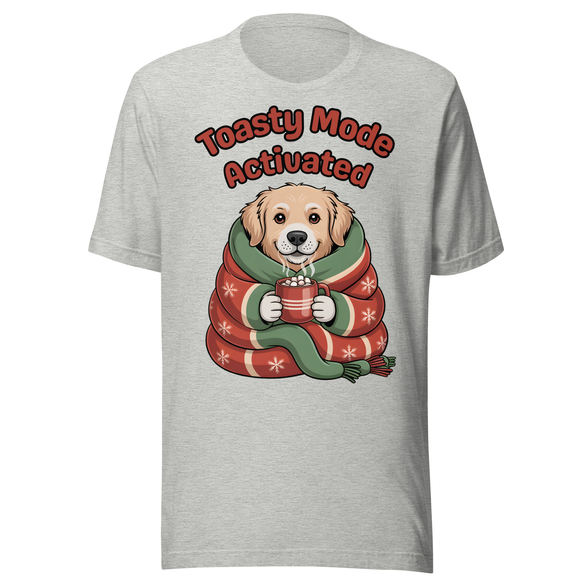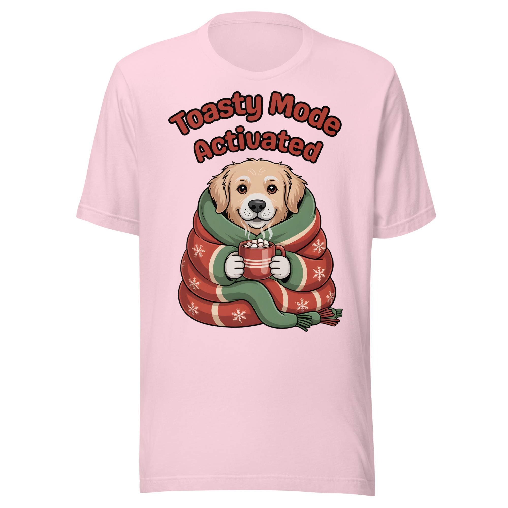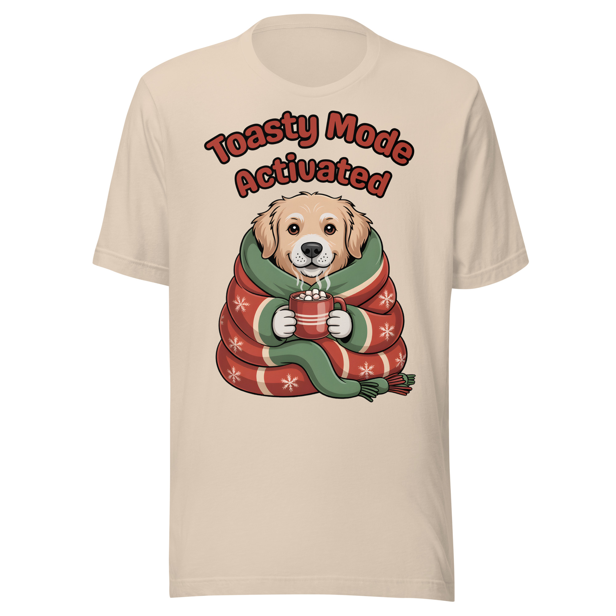 Is your Golden Retriever the definition of cozy? This adorable and witty Unisex T-shirt is perfect for dog lovers who embrace winter hibernation! It features a sweet Golden Retriever puppy wrapped snugly like a burrito in a festive blanket, holding a tiny mug of hot cocoa. The cheerful text “Toasty Mode Activated” confirms that the dog (and you!) are fully committed to comfort this season.