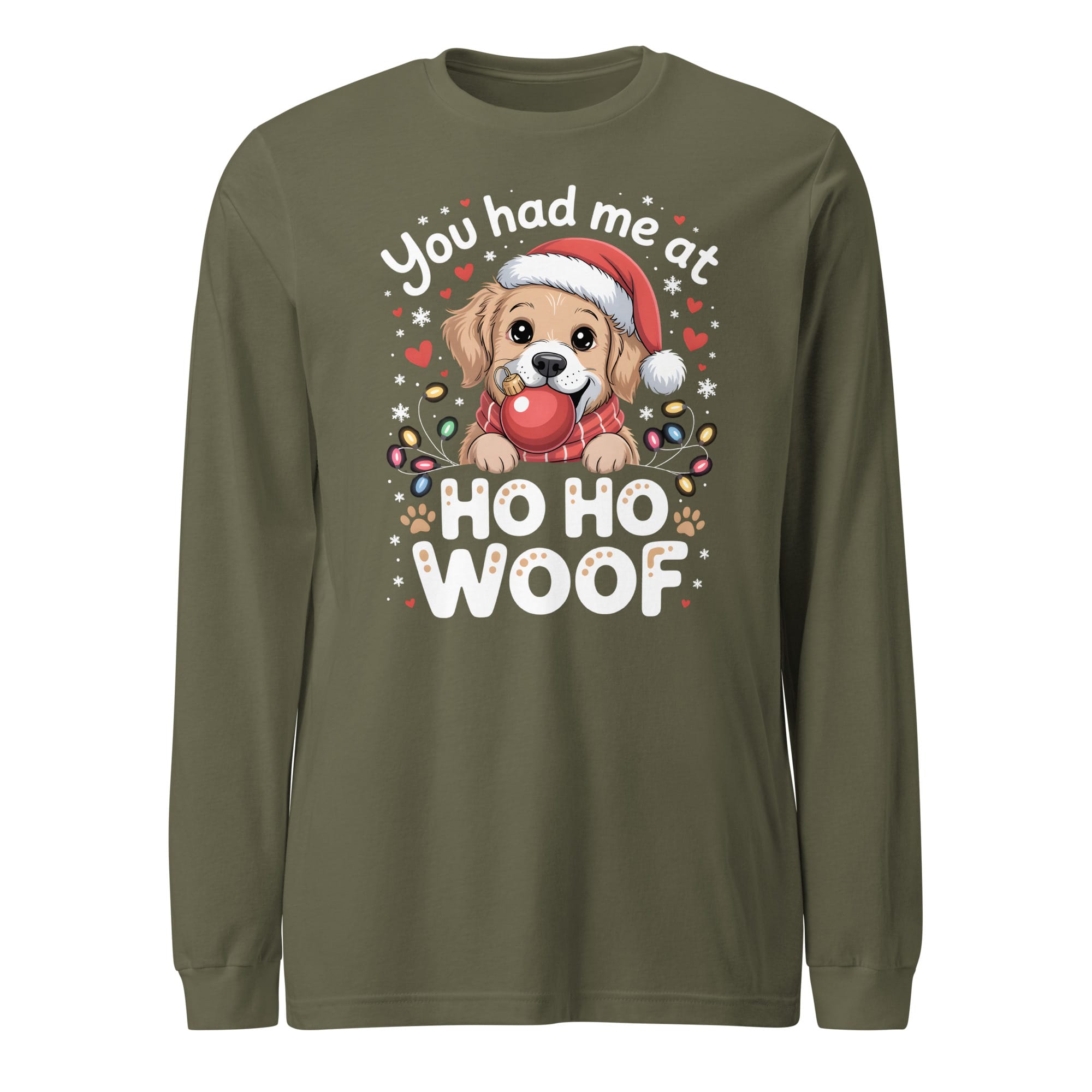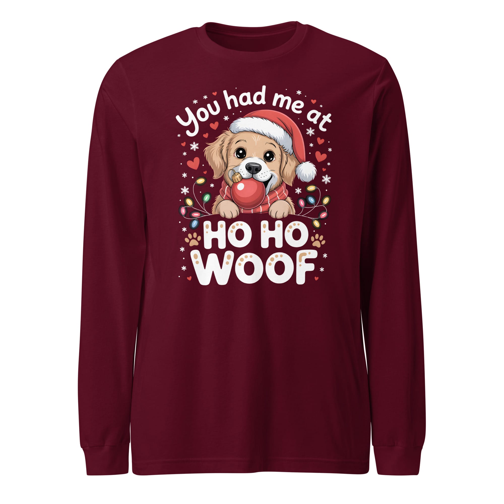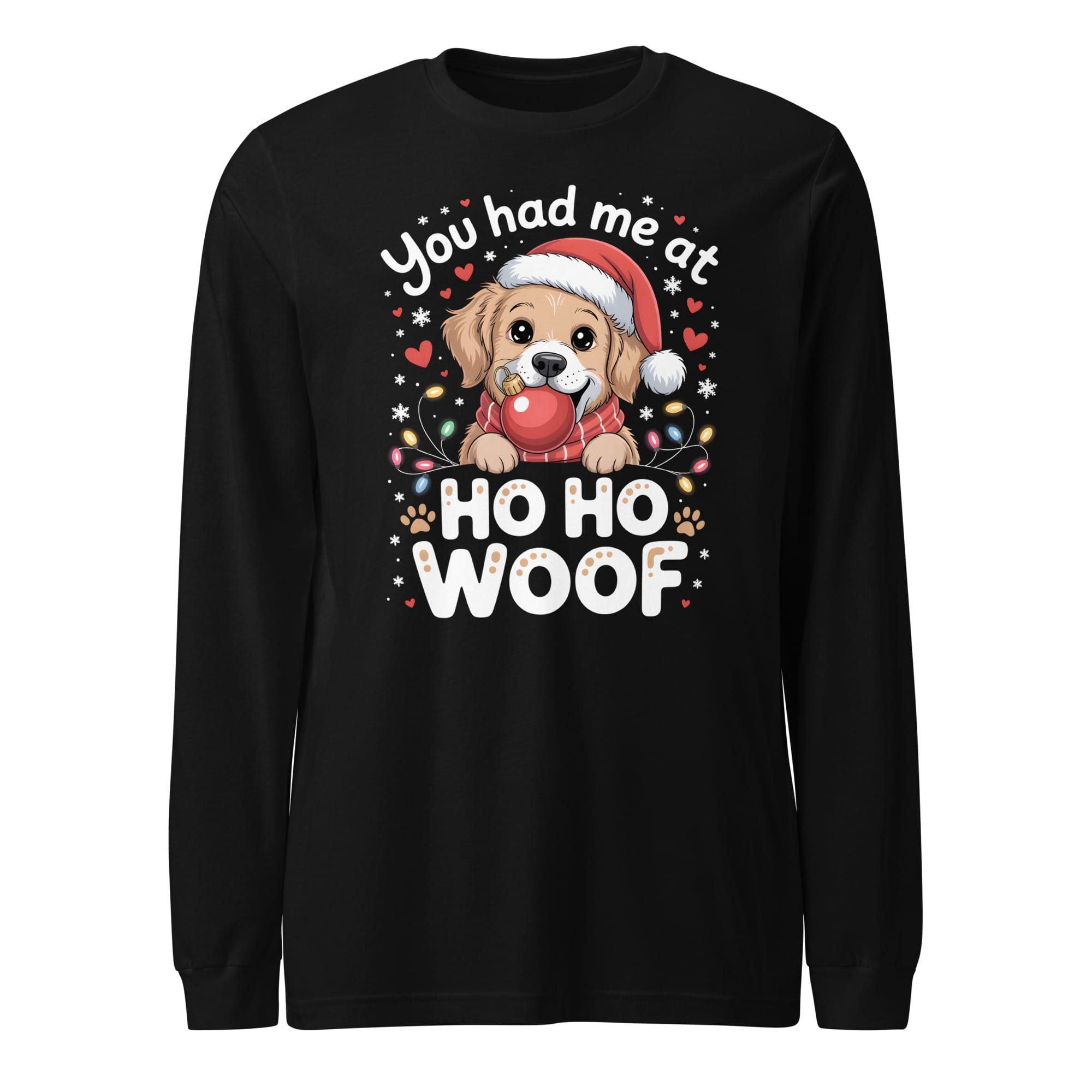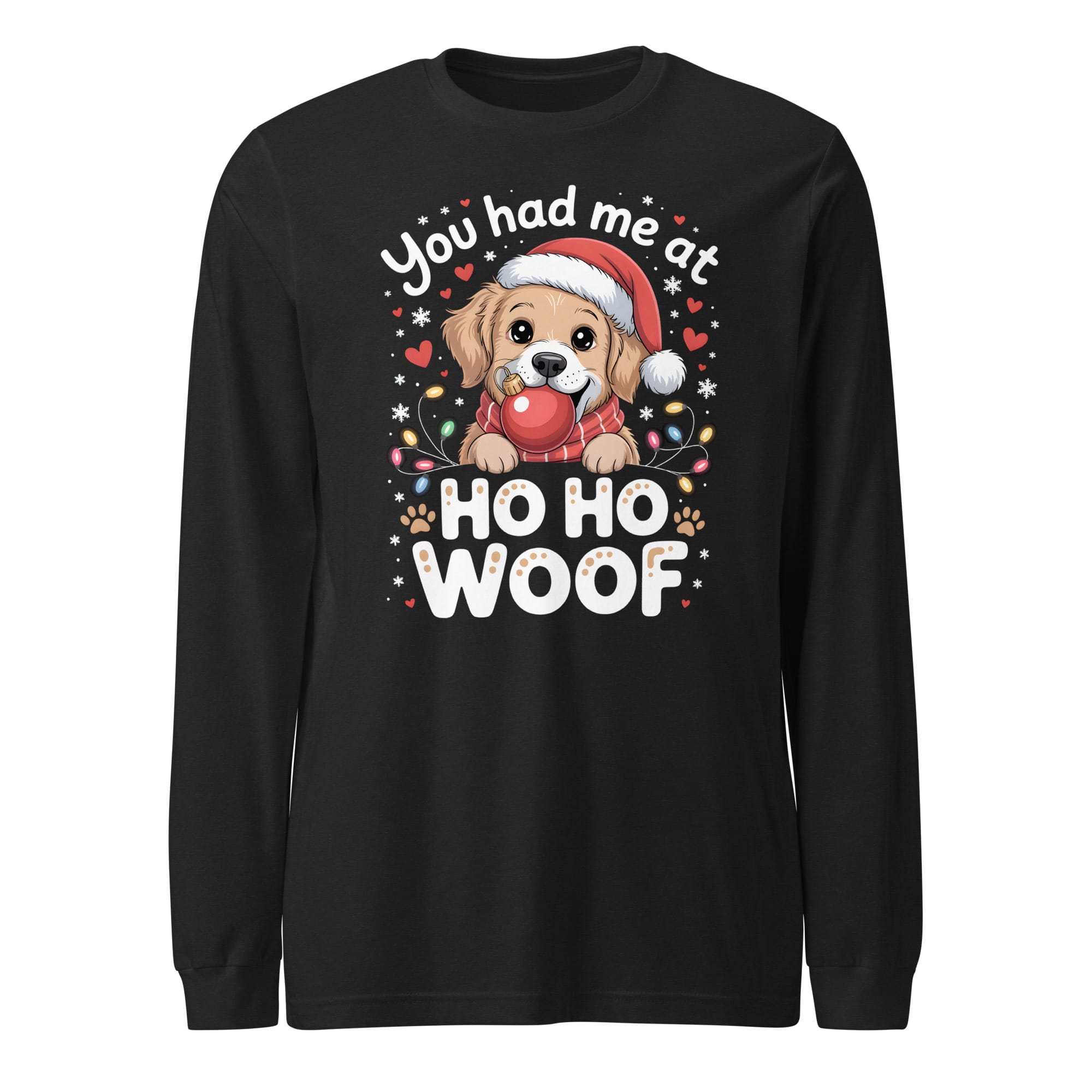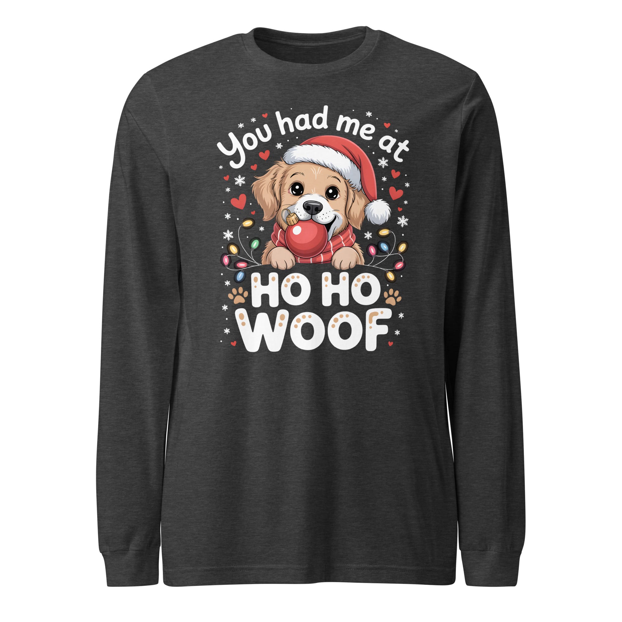 Get your dose of holiday cuteness with this adorable and cozy Unisex Long Sleeve Tee! Featuring the festive graphic of a happy puppy in a Santa hat and the fun quote “You had me at HO HO WOOF,” this shirt is perfect for all your Christmas activities. It’s an ideal choice for a casual look, comfortable for wearing on its own, or layering under a vest or jacket on a cold day.